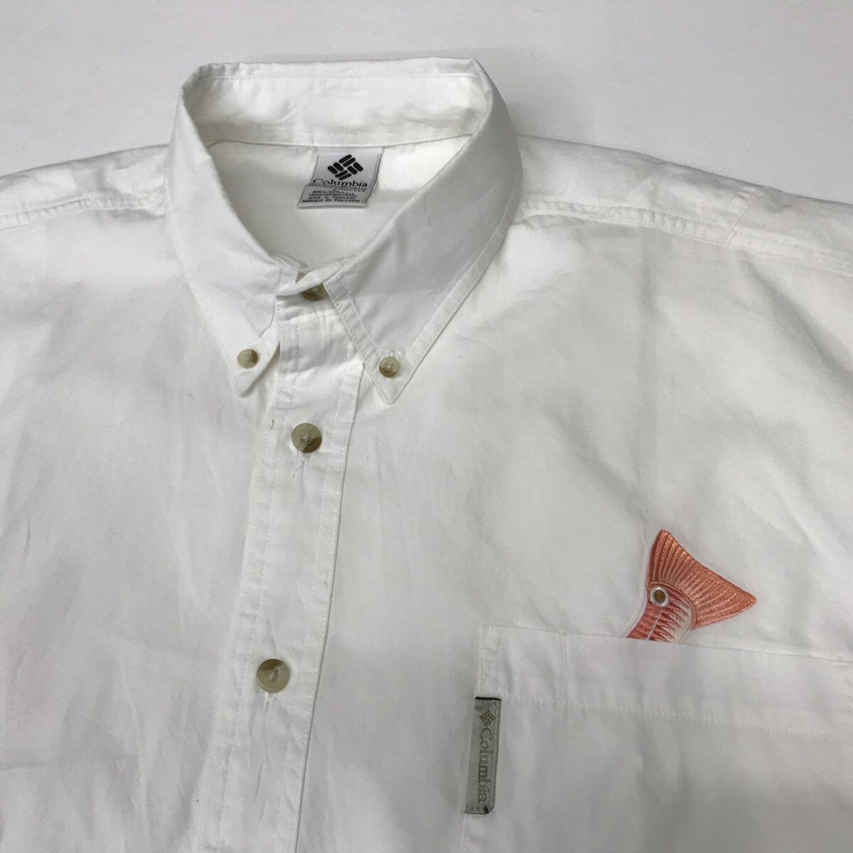 [SALE] PFG コロンビア PFG 半袖 ポケット魚 刺繍入り ボタンダウン フィッシングシャツ 白 表記L
