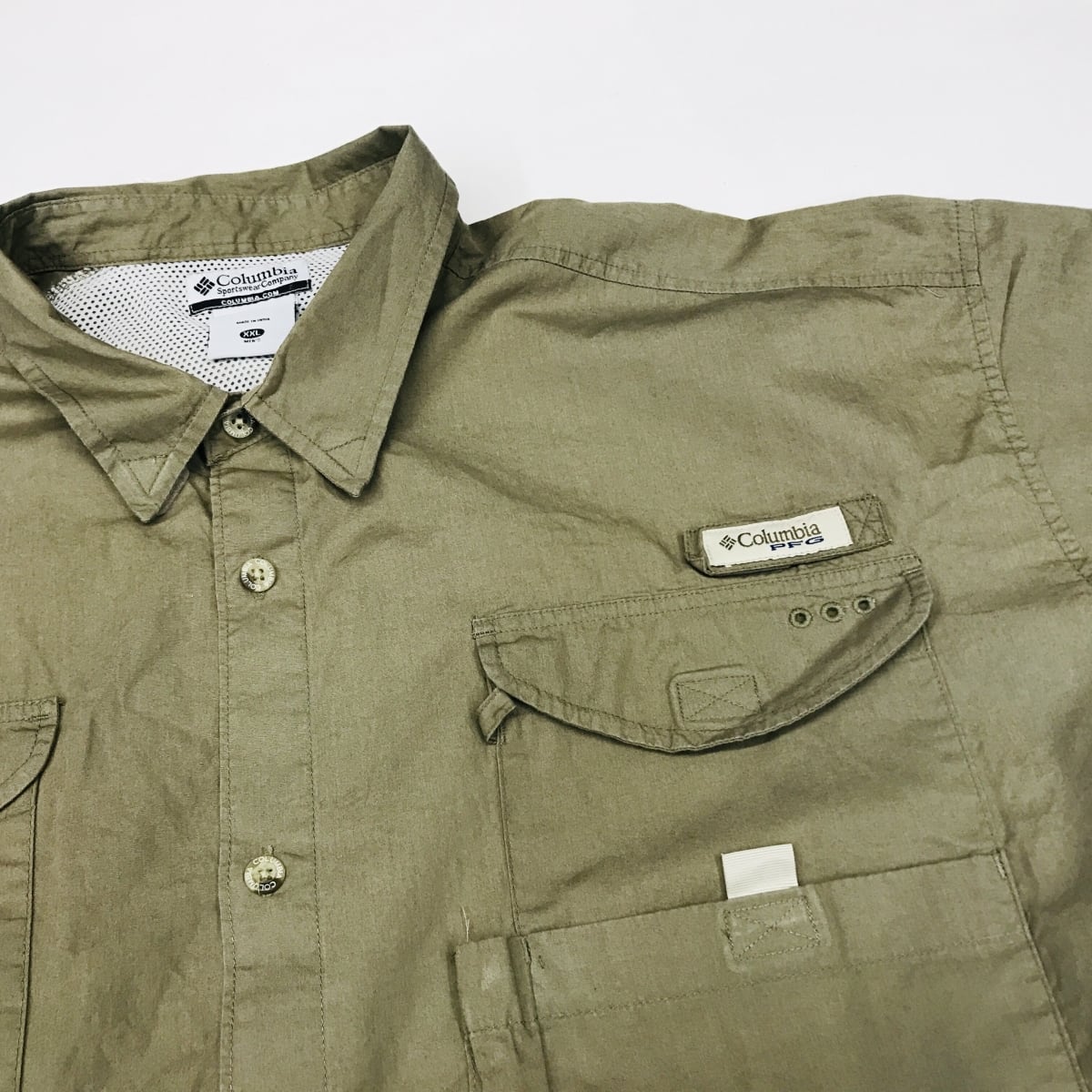 Columbia PFG コロンビア PFG 魚刺繍入り 半袖 フィッシングシャツ カーキ 表記XXL