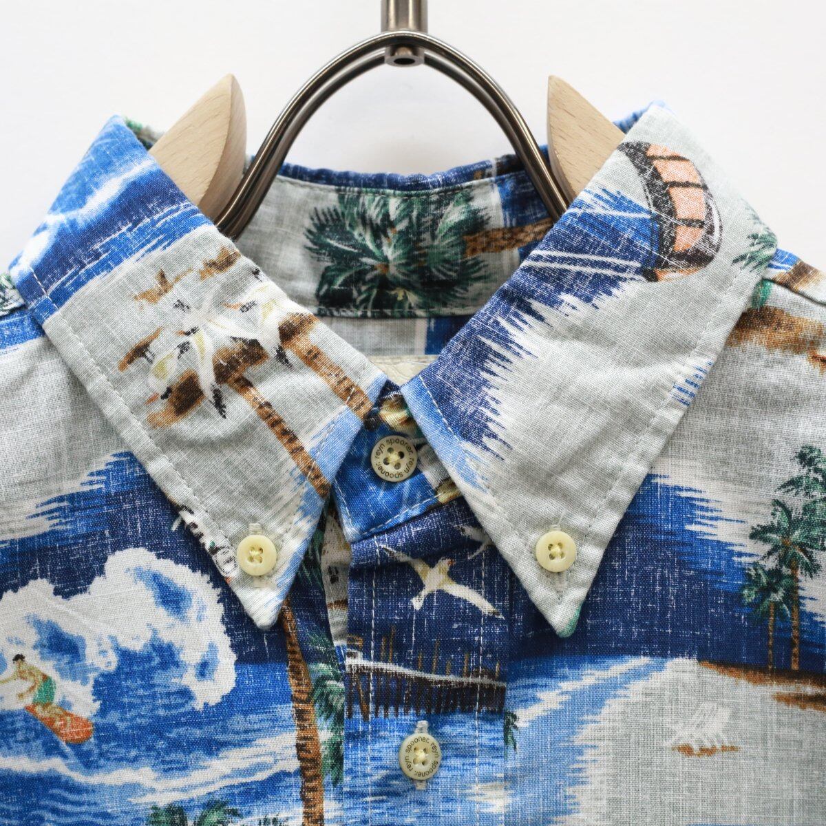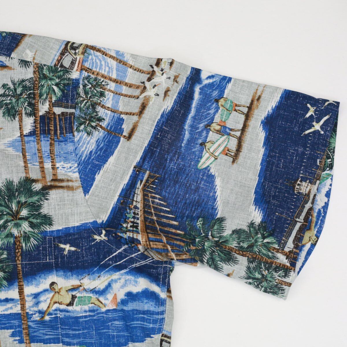 [SALE] レインスプーナー 00年代 アロハシャツ リバースプリント サーフ ブルー M