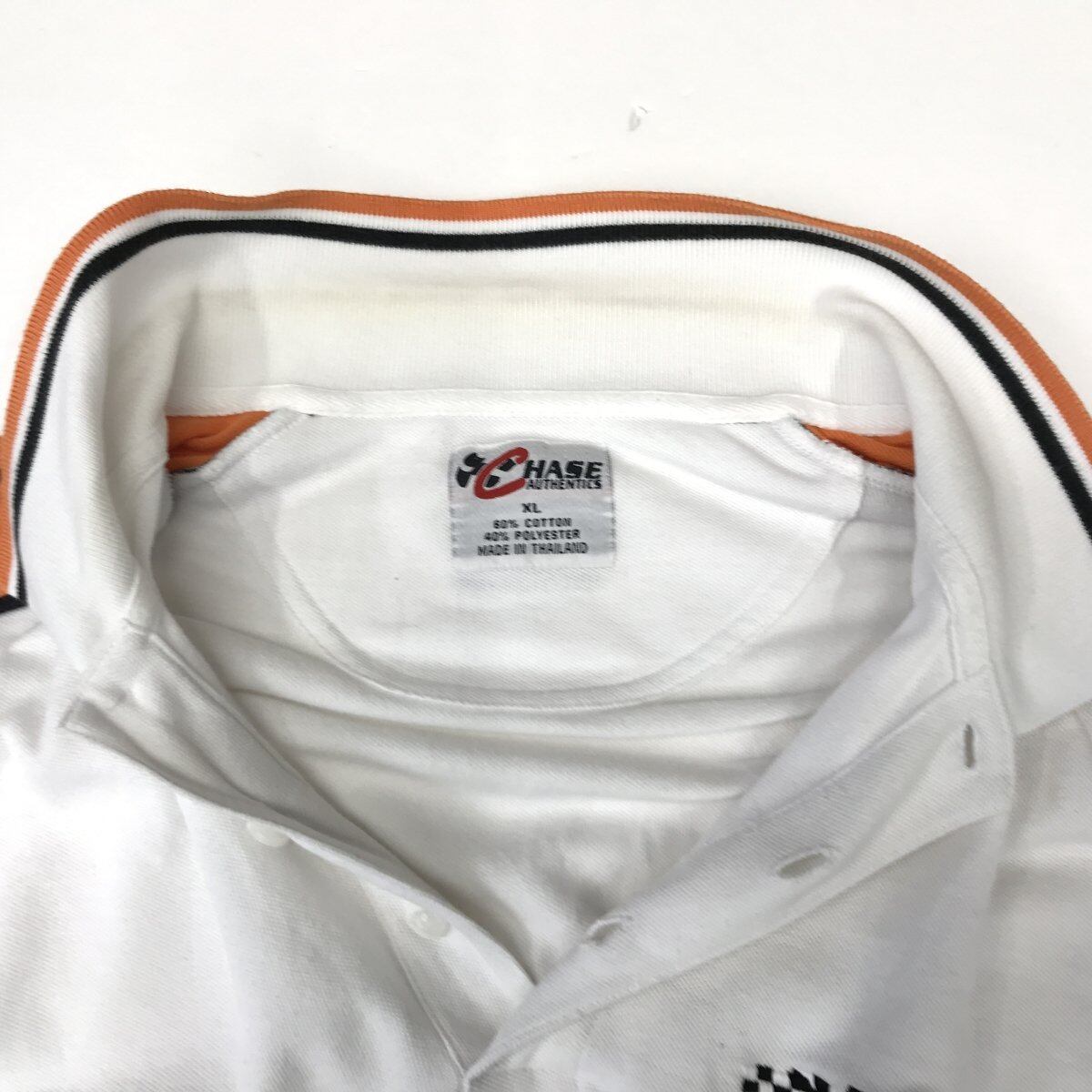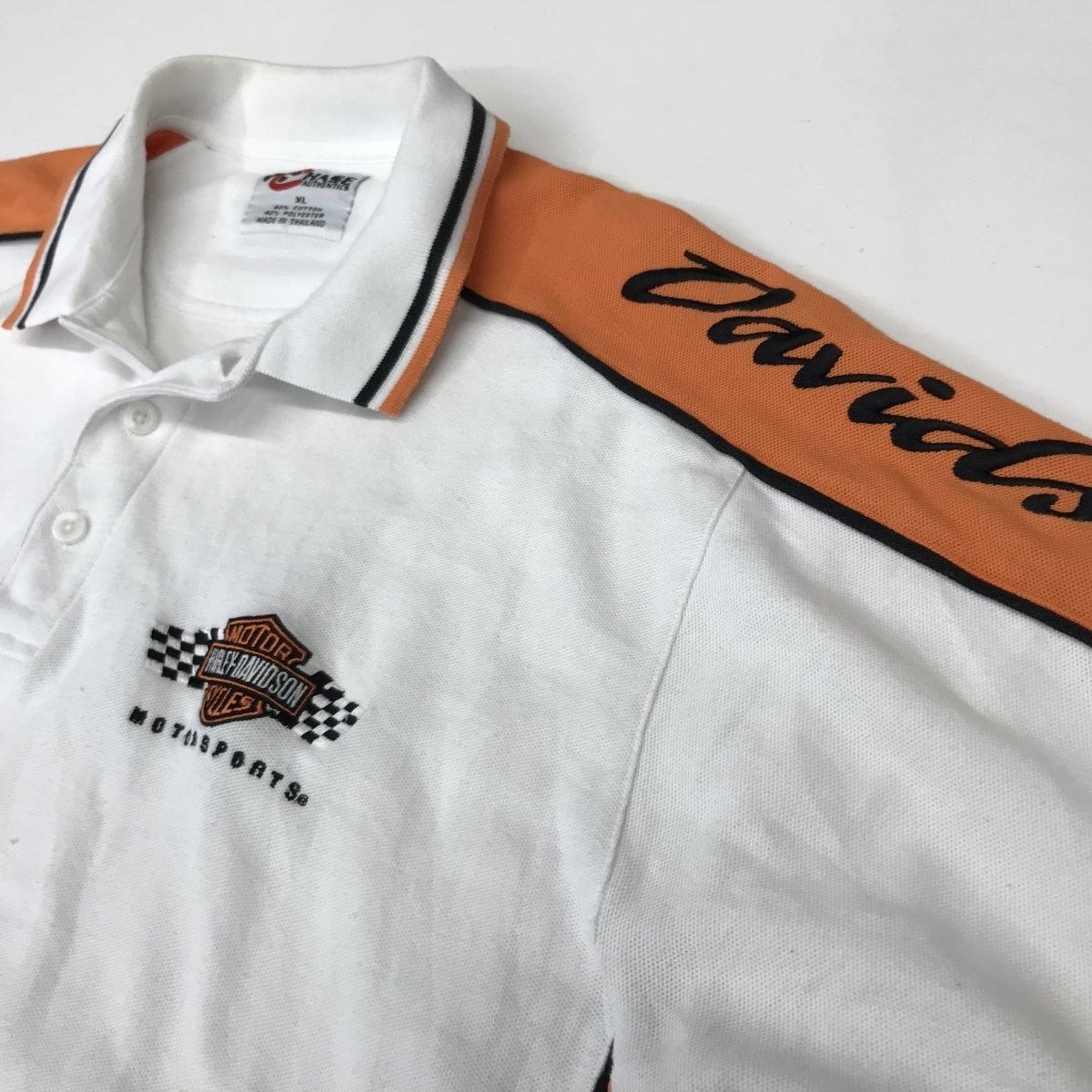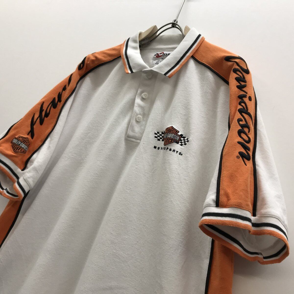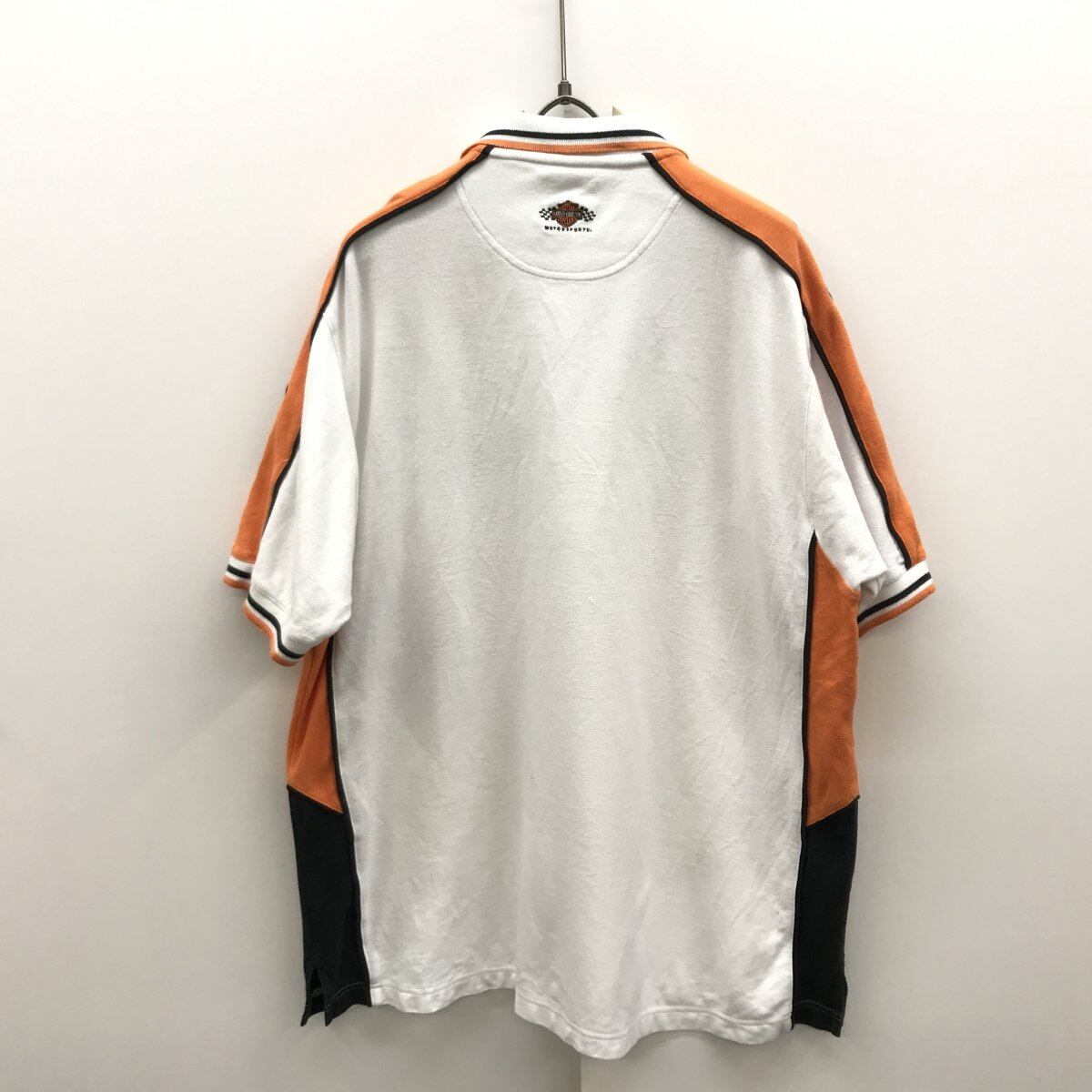 ハーレーダビッドソン ワンポイントロゴ刺繍 肩ラインロゴ刺繍 半袖 鹿の子ポロシャツ メンズXL ホワイト×オレンジ