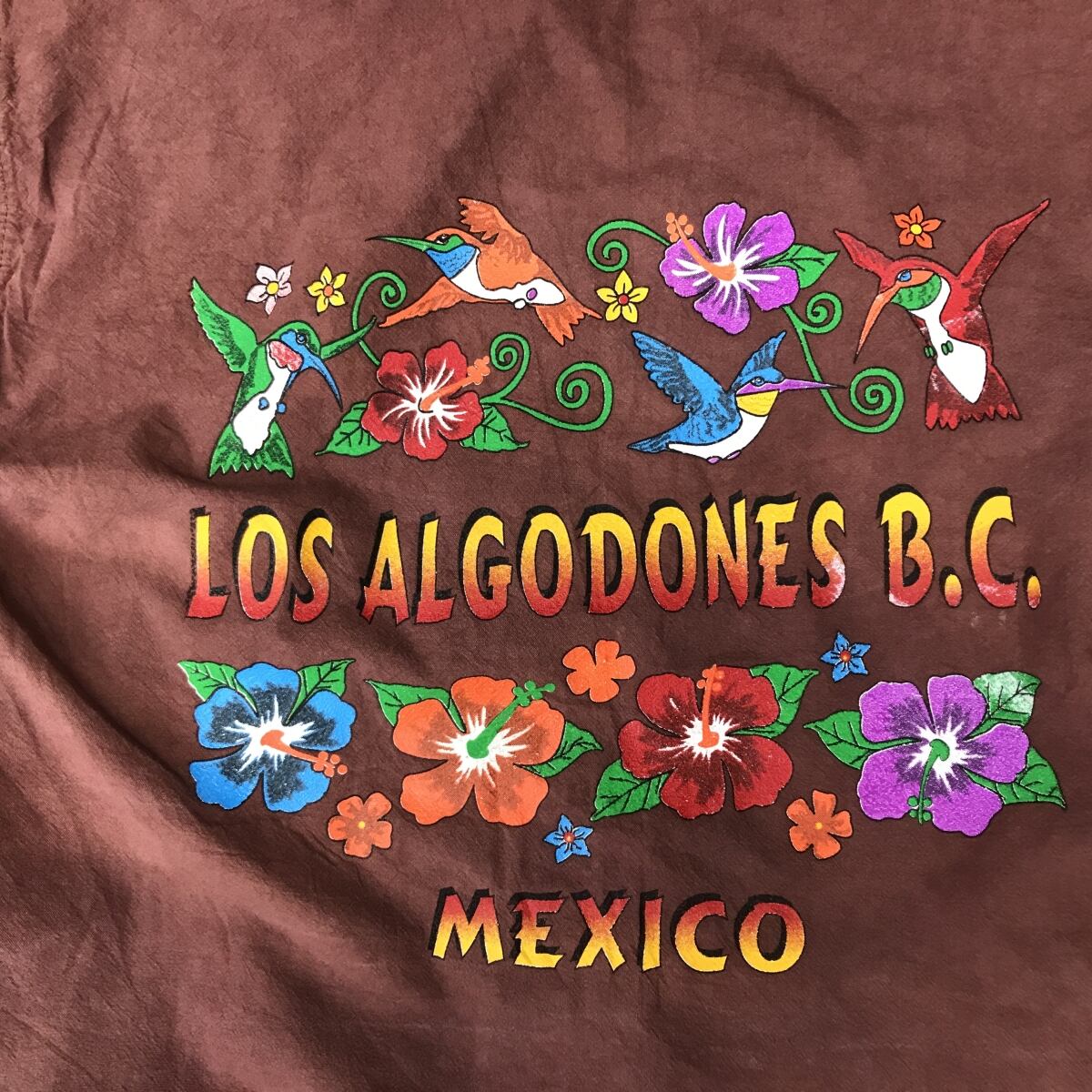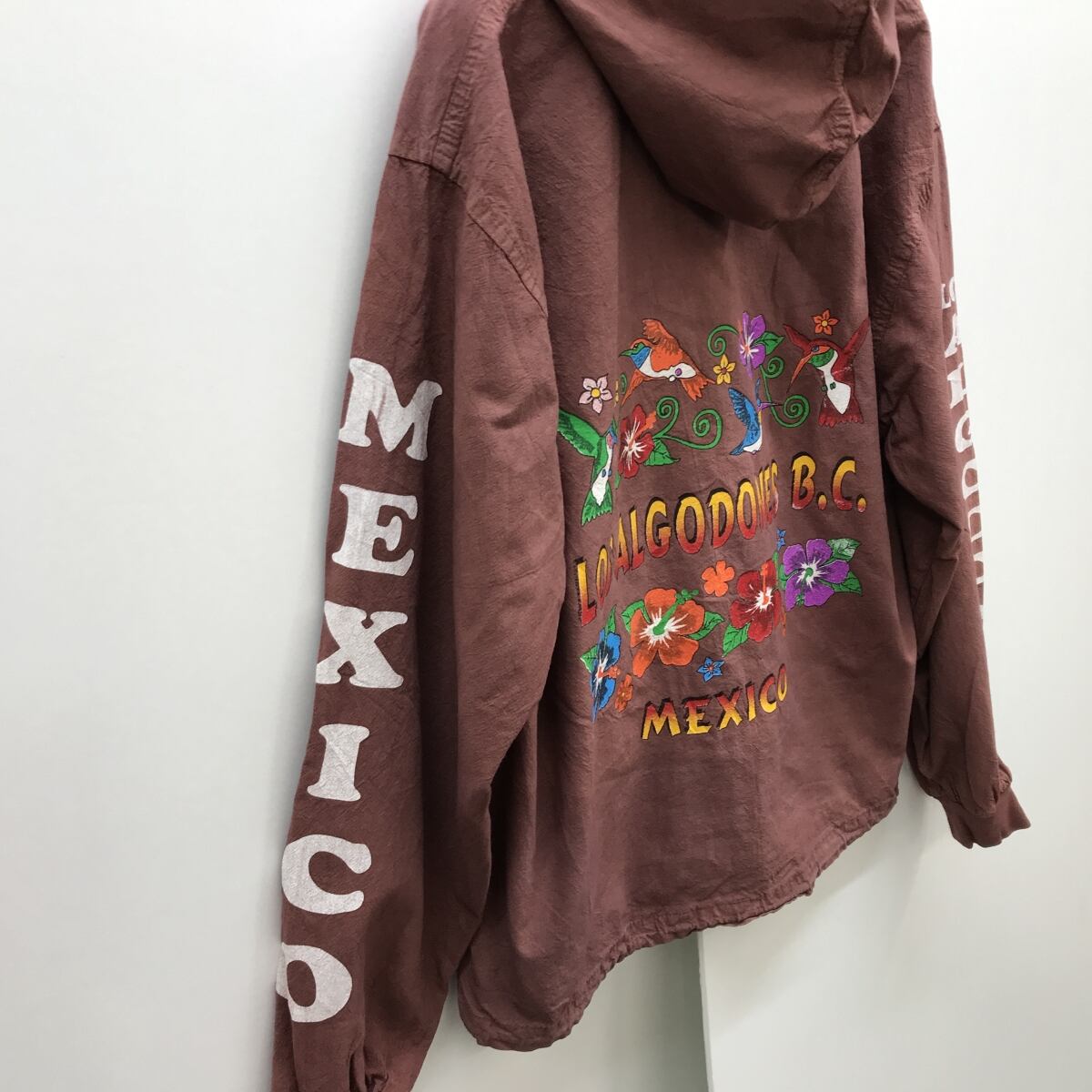 80〜90年代 ビンテージ 薄手コットン ジップパーカー ビーチジャケット LOS ALGODONES ハチドリ柄 うすココア色 L相当 ハミングバード