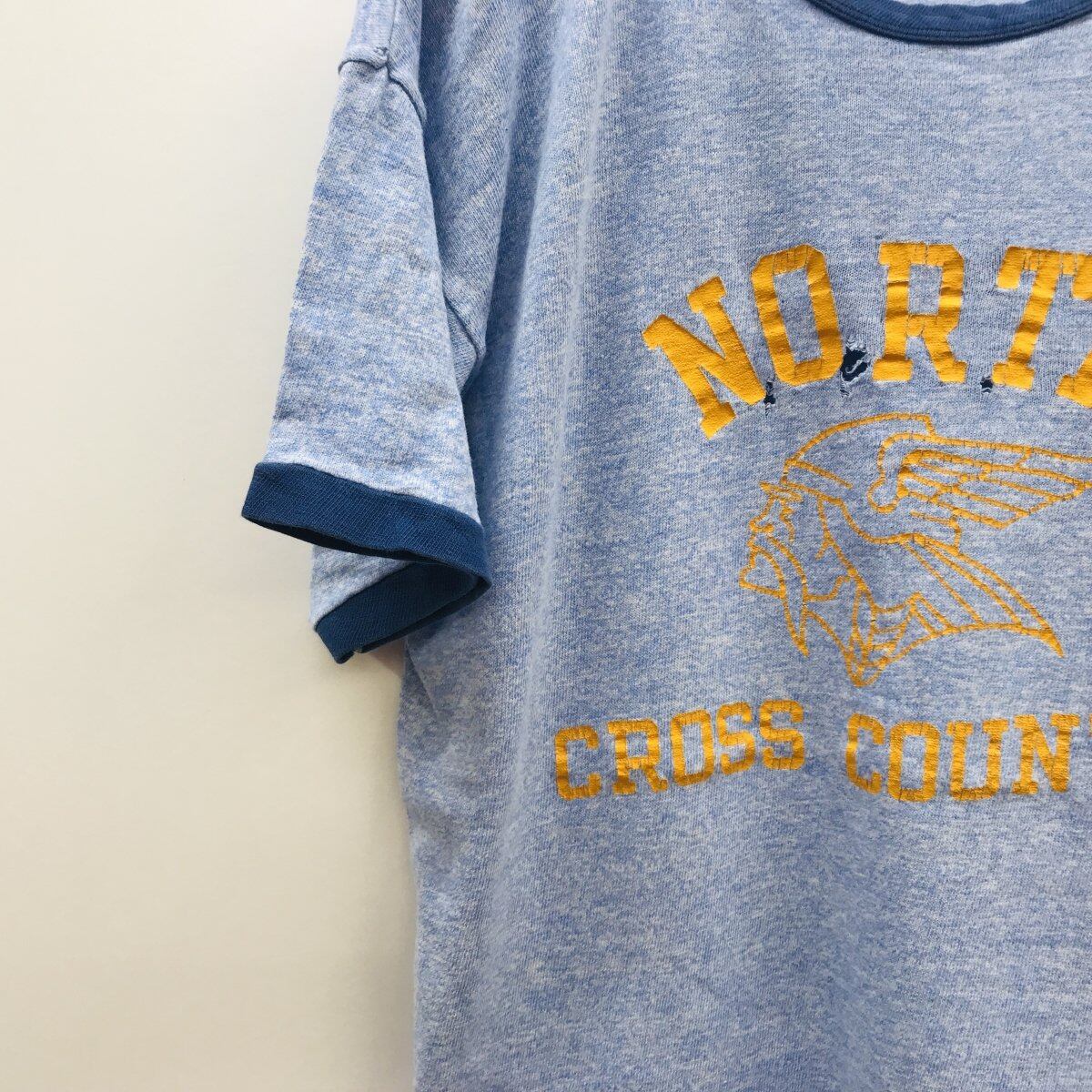[SALE] チャンピオン 70〜80年代 後期バータグ NORTH CROSS COUNTRY ビンテージTシャツ トリミングTシャツ アッシュブルー 杢ブルー