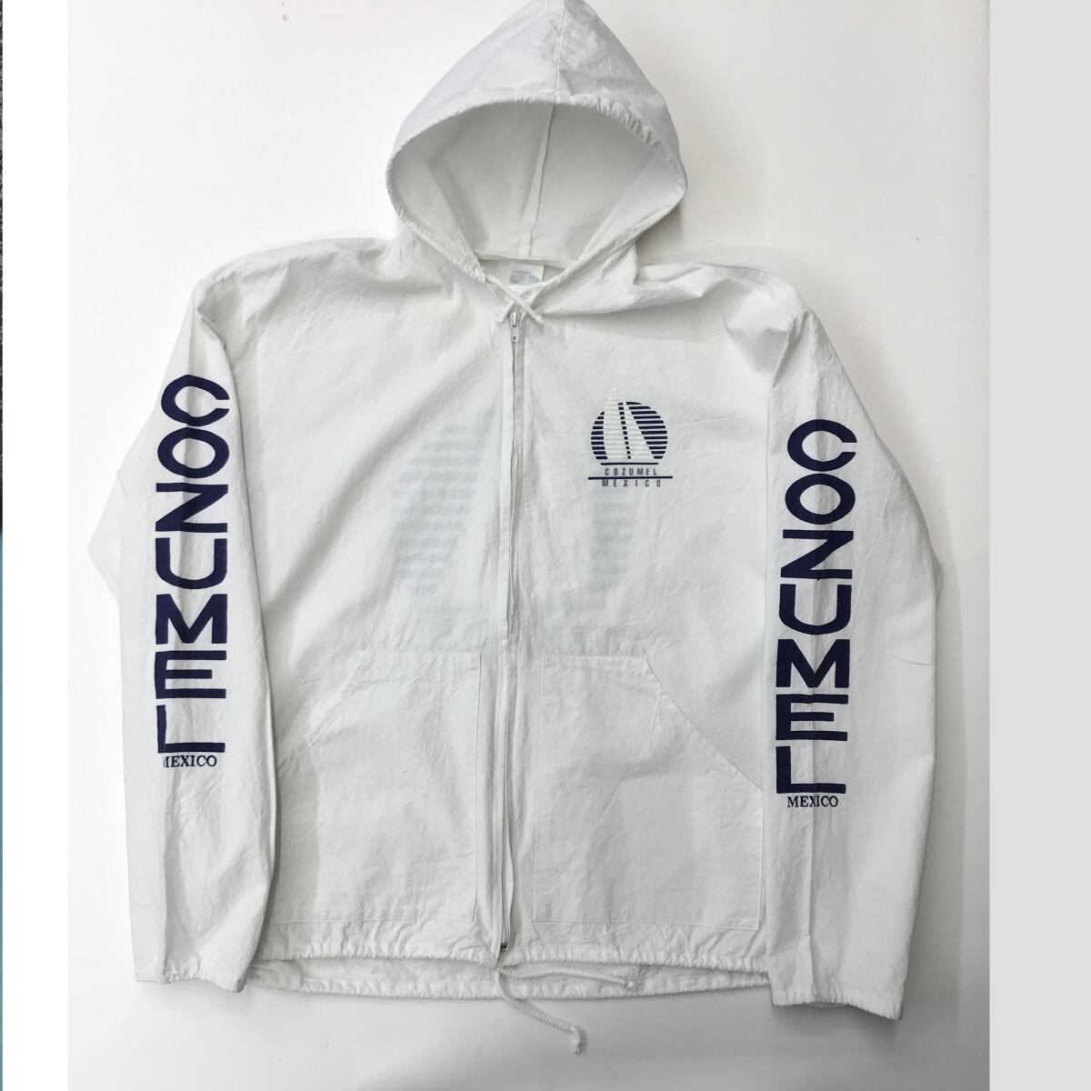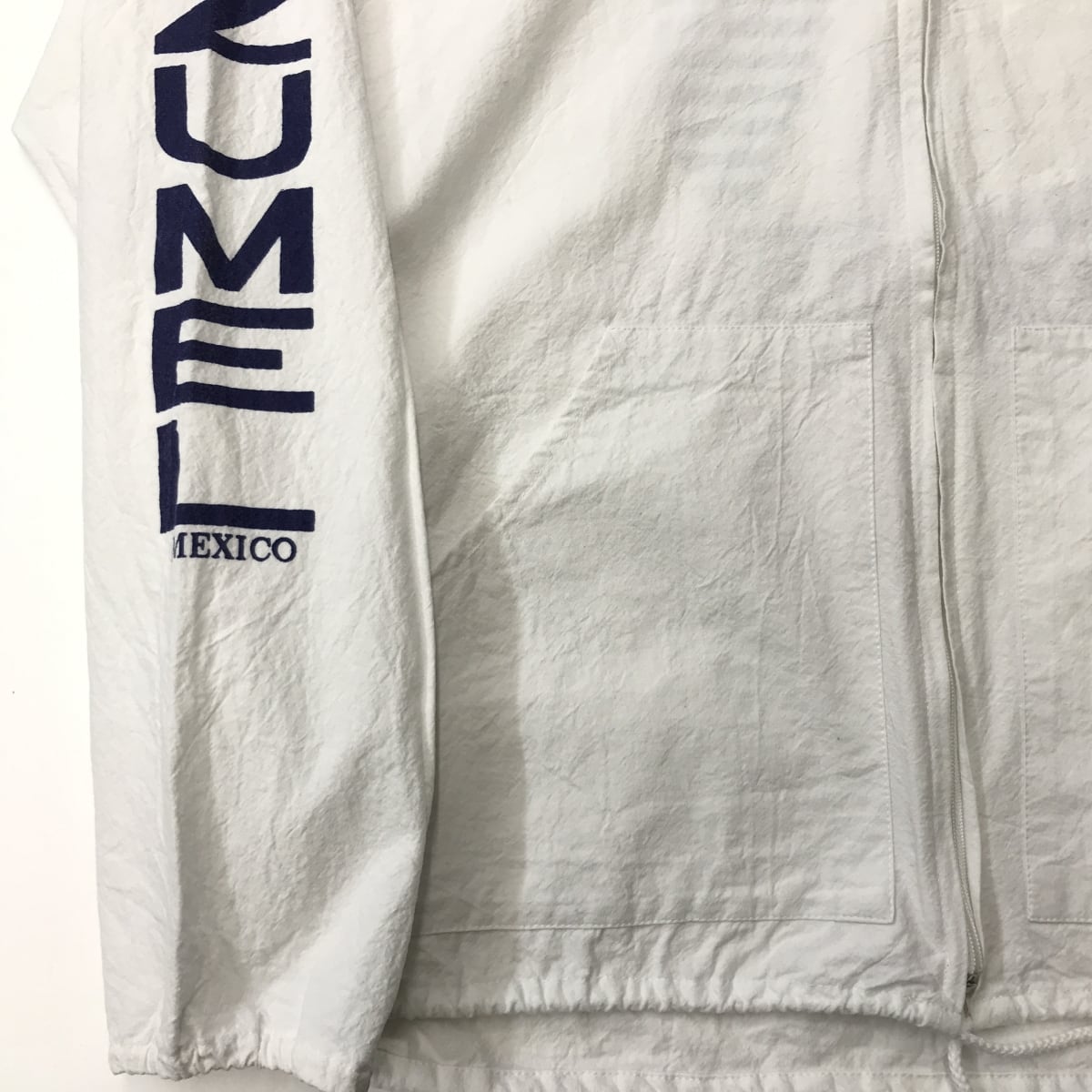 LOL-BEE 80〜90年代 ビンテージ 薄手コットン ジップパーカー ビーチジャケット CANCUN MEXICO ヨットセイリング柄 白 XL以上〜相当