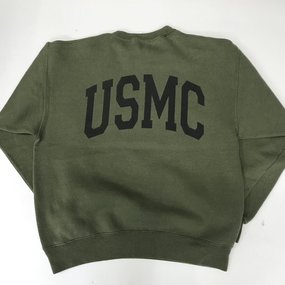 ミリタリーカーキグリーンにお決まりのプリントのUSMCのロゴがかっこいい