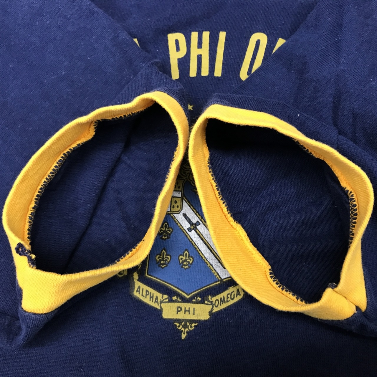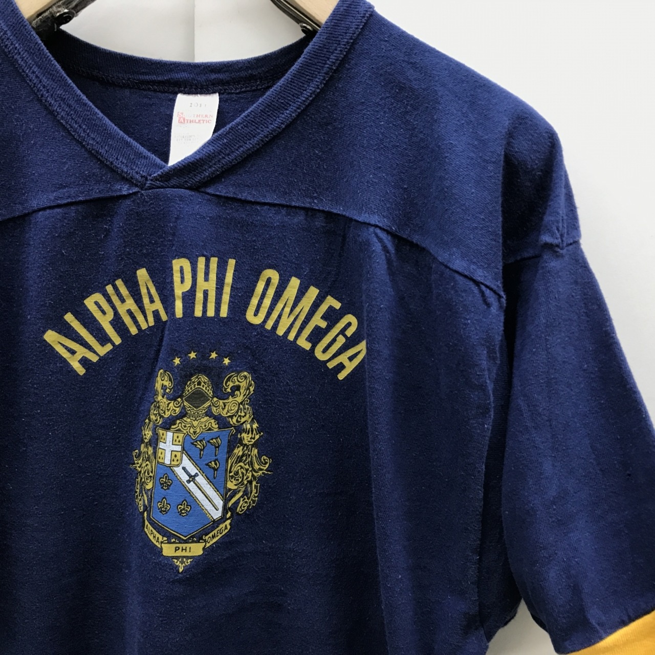 【30%OFF セール】 SOUTHRN ATHLETIC サザンアスレチック 60年代 USA製 ALPHA PHI OMEGA アルファファイオメガ カレッジ フットボールT ネイビー L ビンテージ 【SALE】