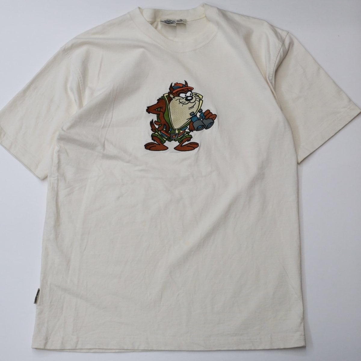 アクメ クロージング ワーナーブラザーズ エンブロイダリー Tシャツ ルーニー・テューンズ タズ クリーム オフホワイト XL