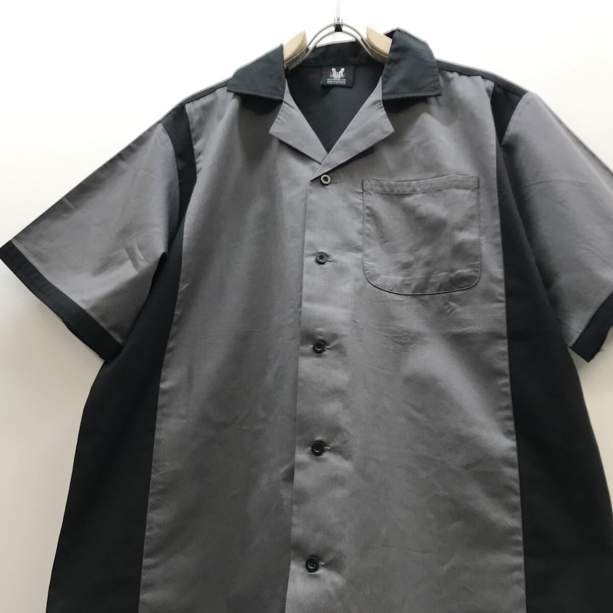 HILTON ヒルトン 超・美品!00年代 ポリコットン 切り替えボーリングシャツ 無地 ML ブラック・グレー! オープンシャツ