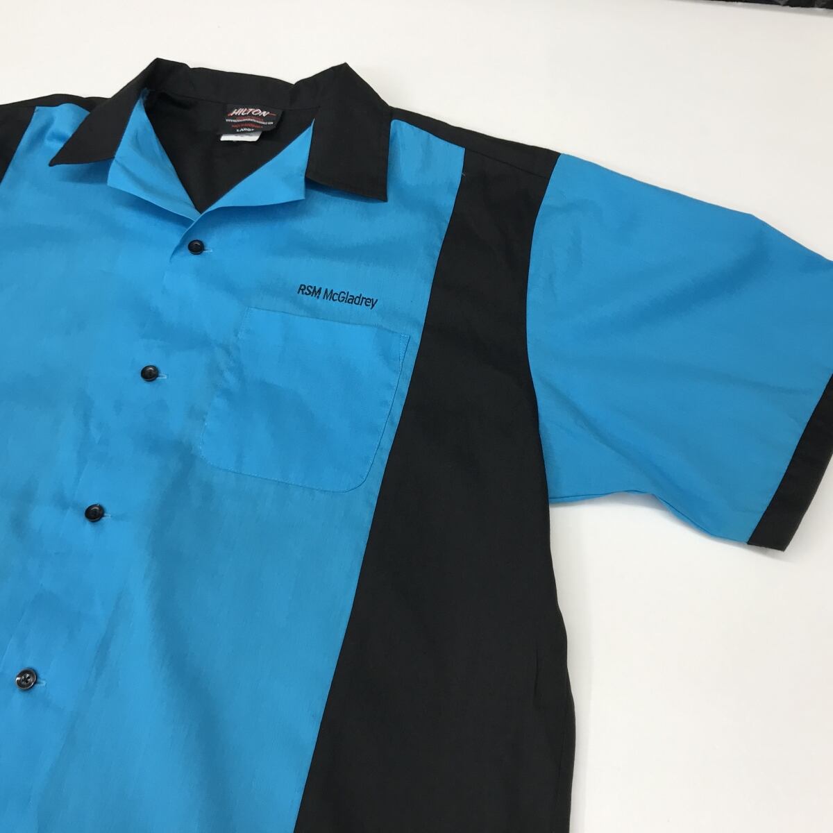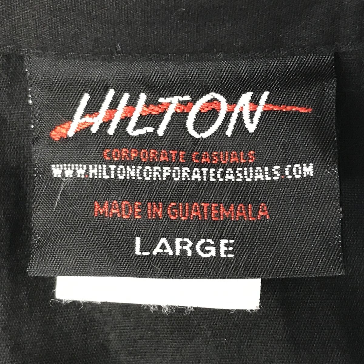 美品!ヒルトン 00年代 ポリコットン 切り替えボーリングシャツ 胸企業ワンポイント刺繍入り XL相当 ブラック・ ターコイズ!オープンシャツ