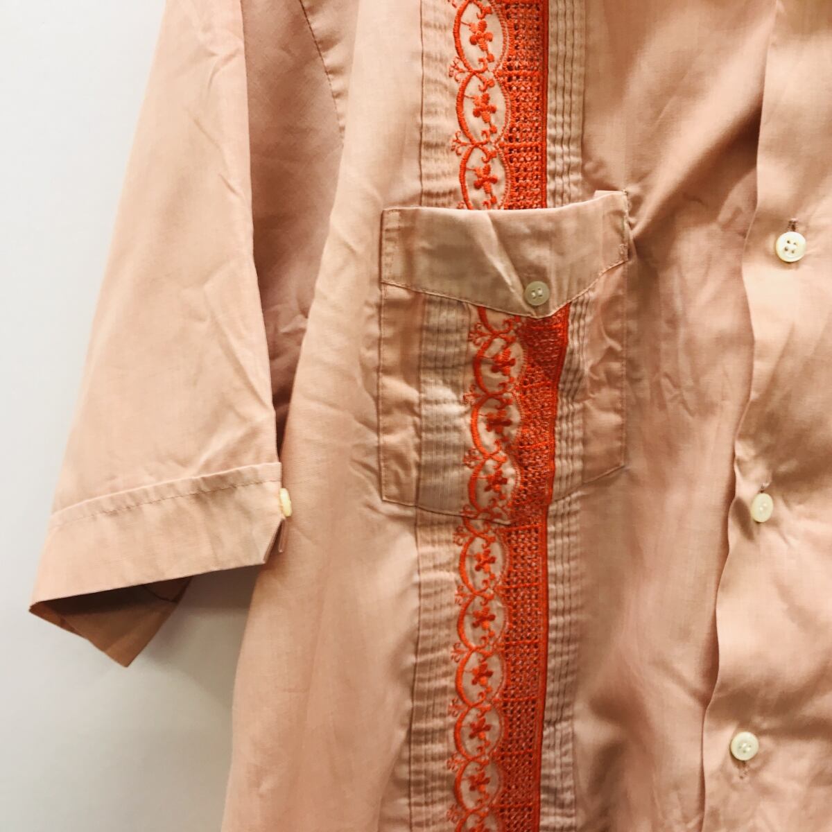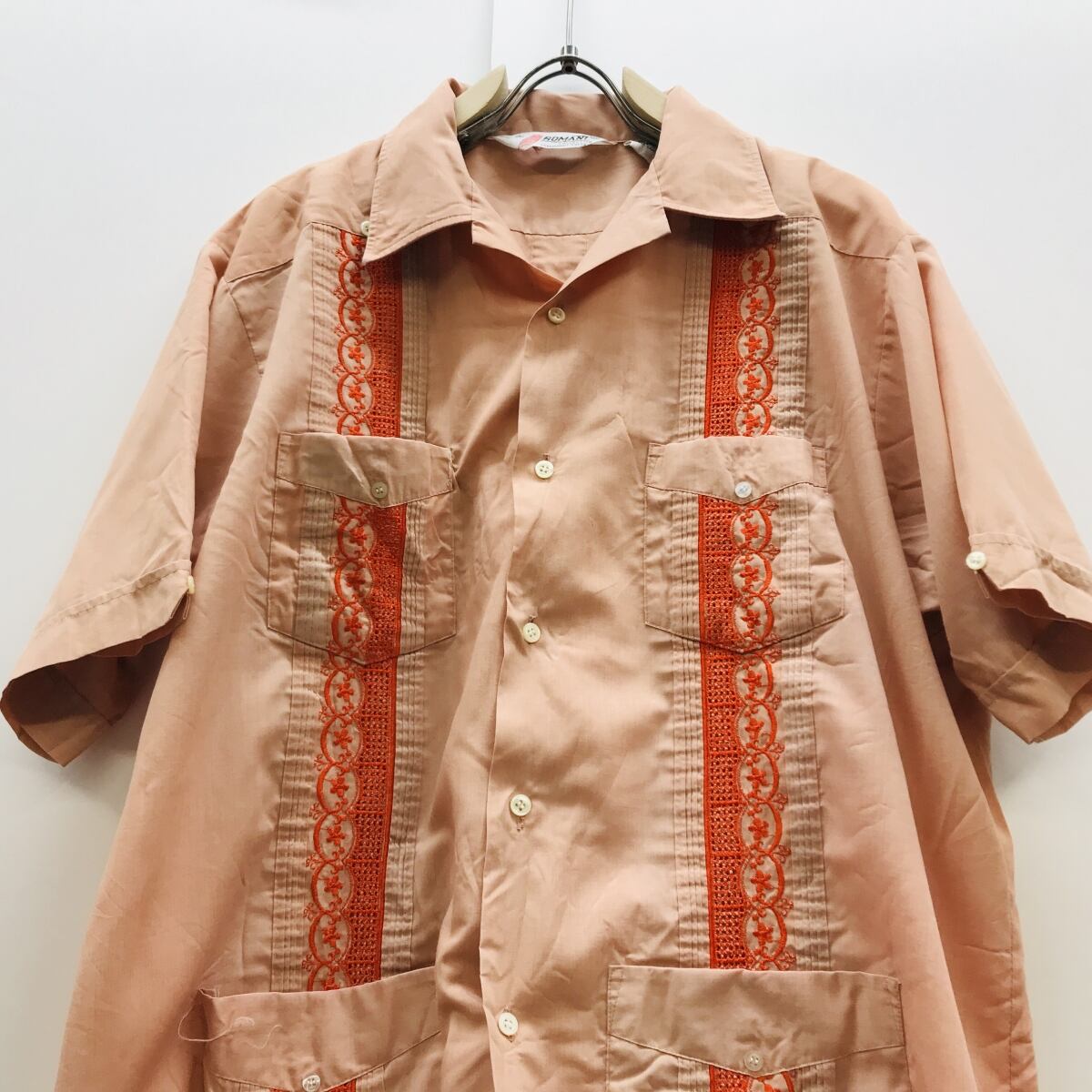 ROMANI COLLECTON 70〜80年代 キューバシャツ GYAYABERA SHIRTS サーモンピンク×オレンジ系 XL