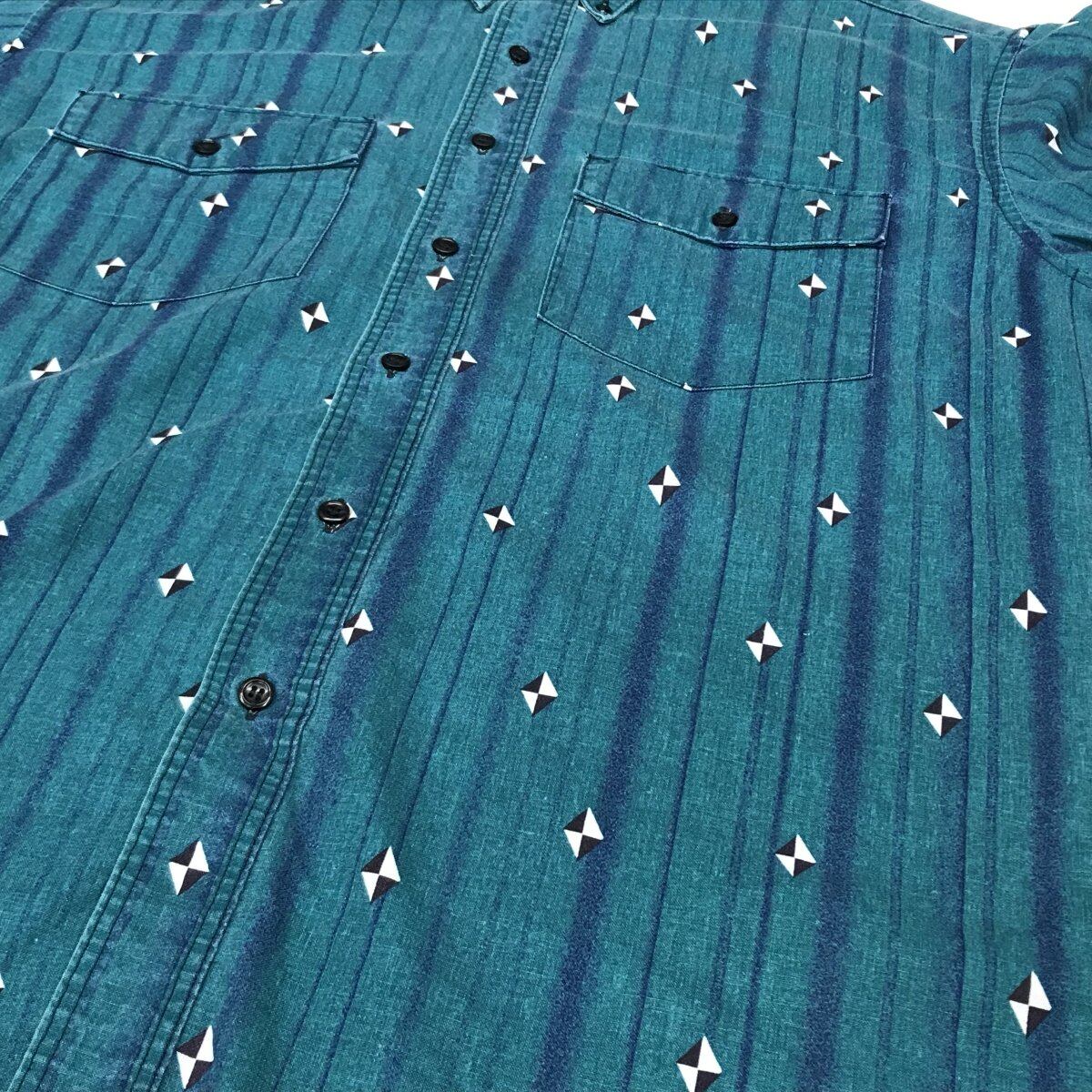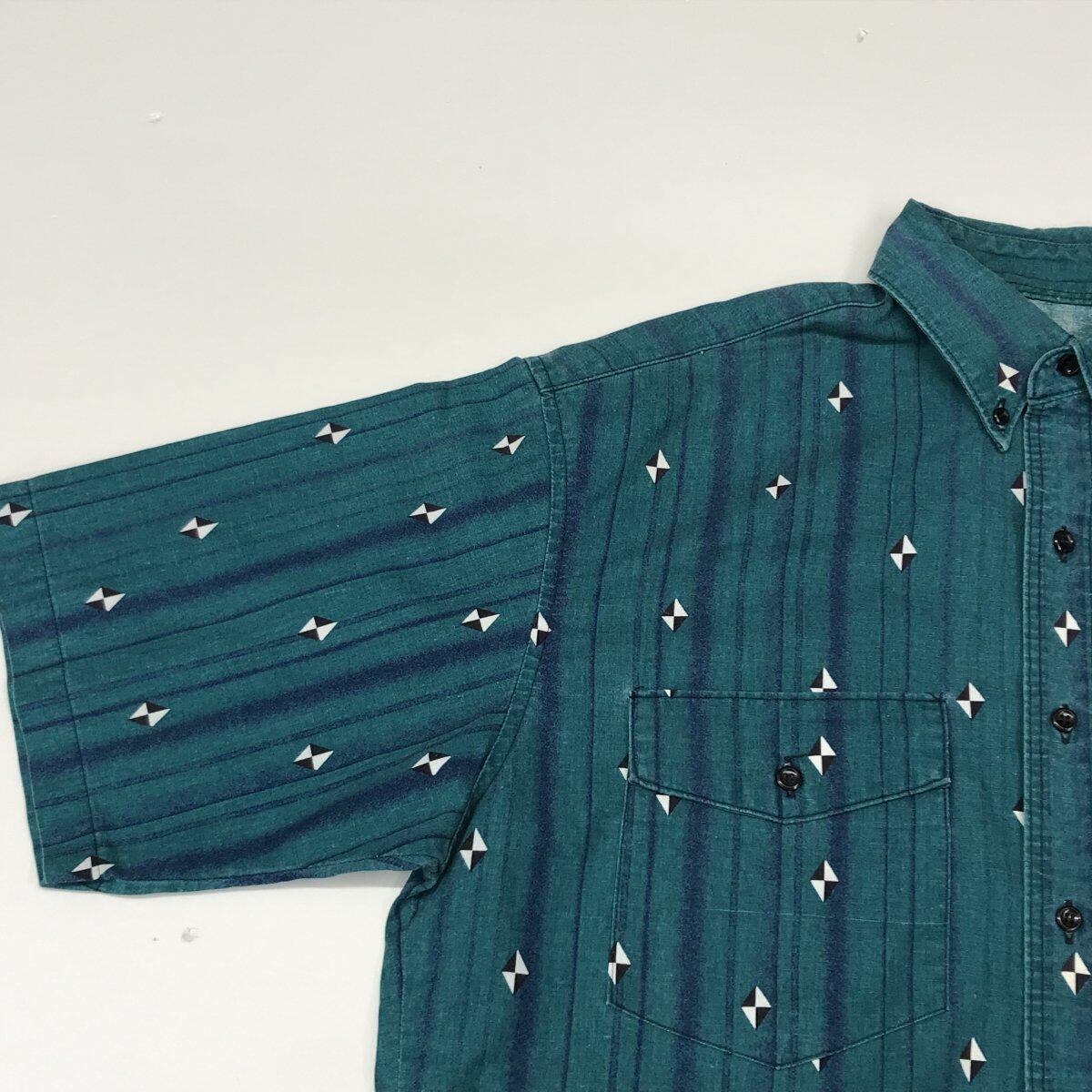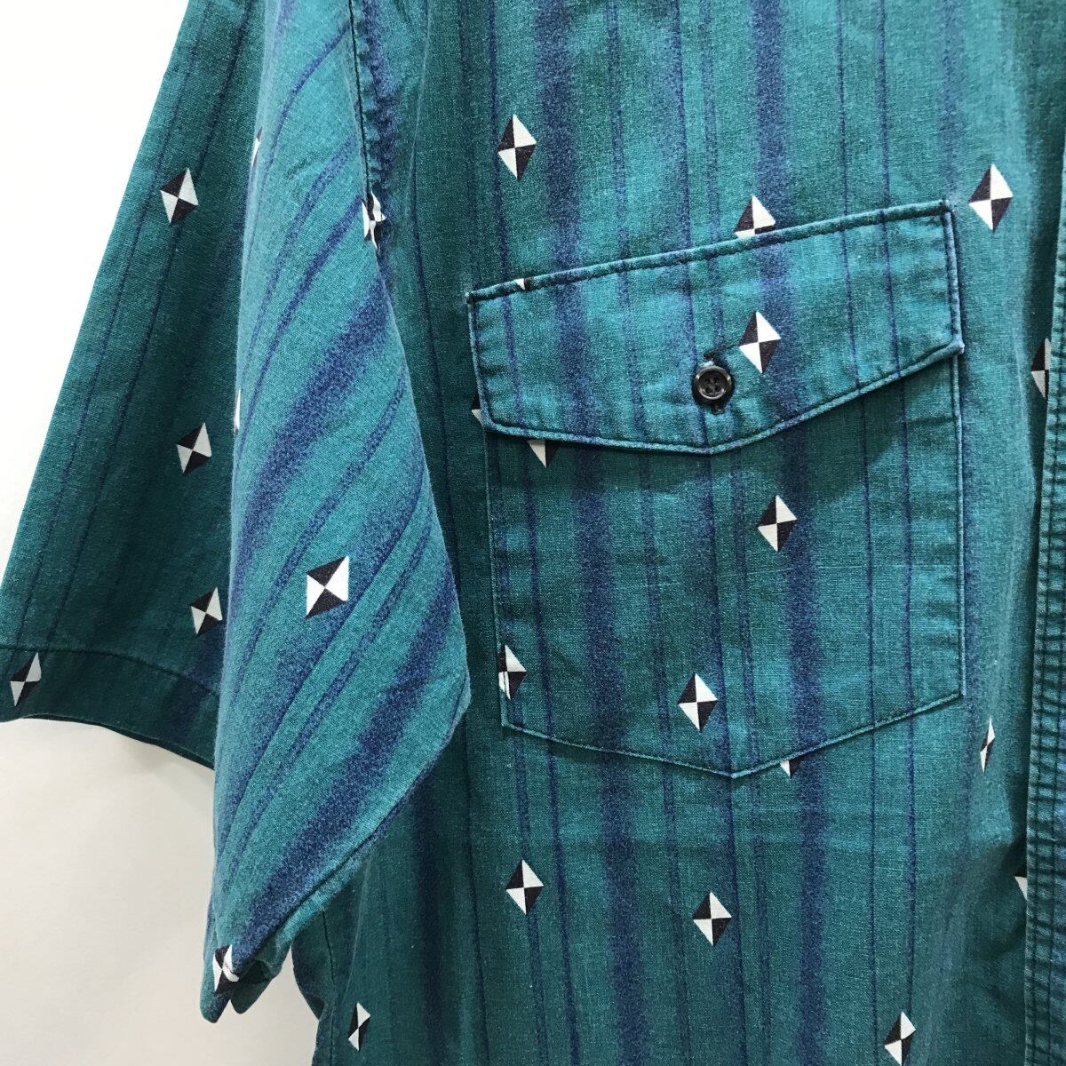 ラングラー 80年代 ストライプ×柄 コットンボタンダウンシャツ ストライプ 菱形柄入り グリーン XL