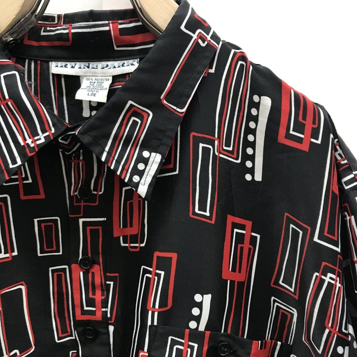 IRVINE PARK 80〜90年代 総柄ドレスポロブラウス?? レトロなポリエステルの風合い 昭和レトロ、パンタロンスタイル!