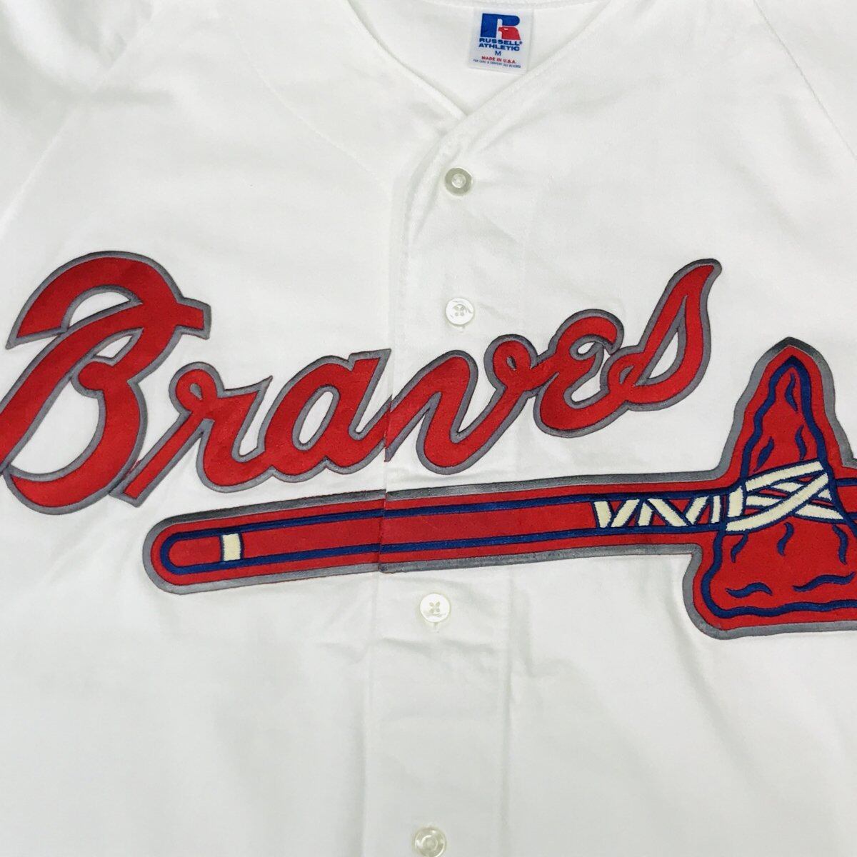 90's RUSSELL 肉厚コットン100 ベースボーシャツ アトランタブレーブス Atlanta Braves MADE IN USA