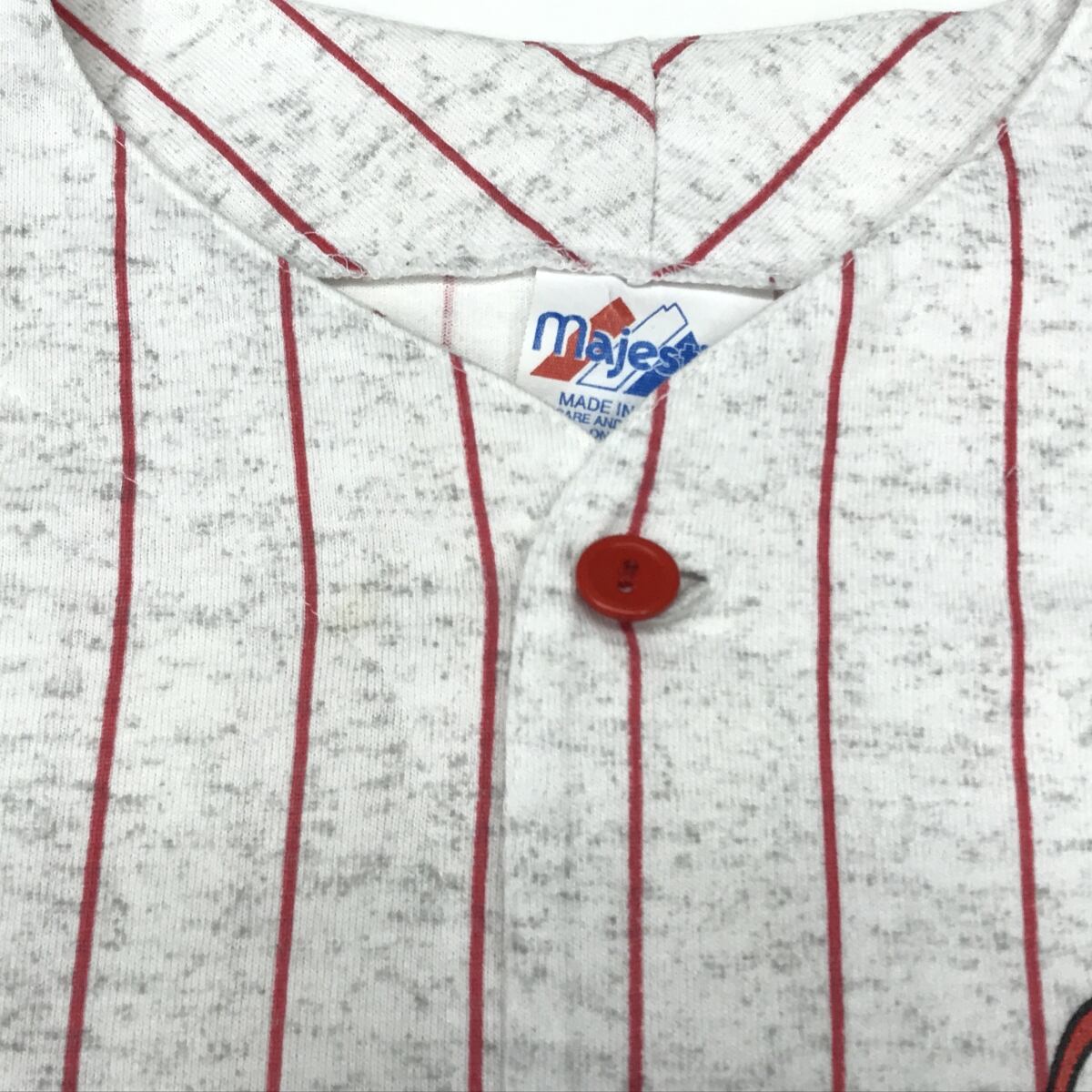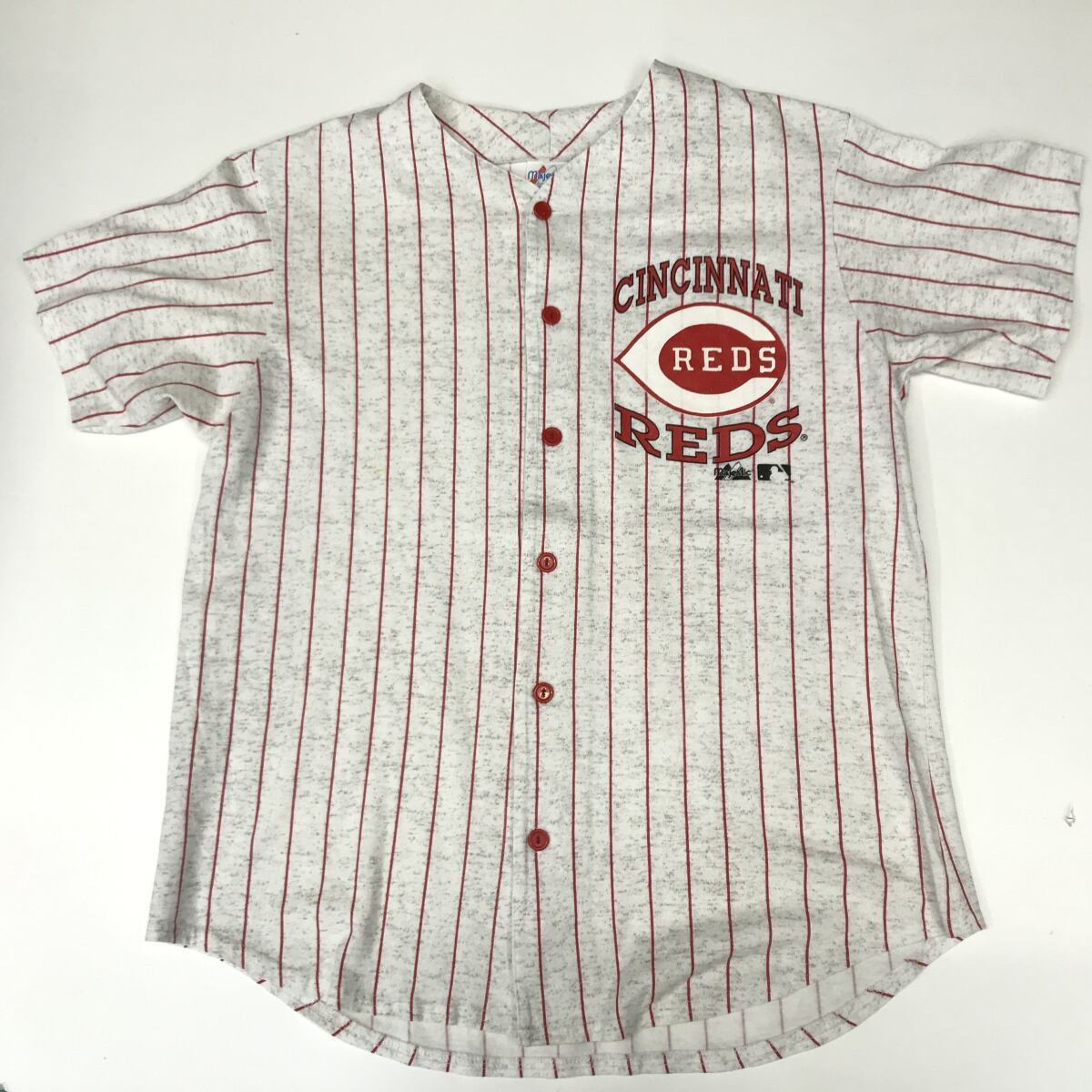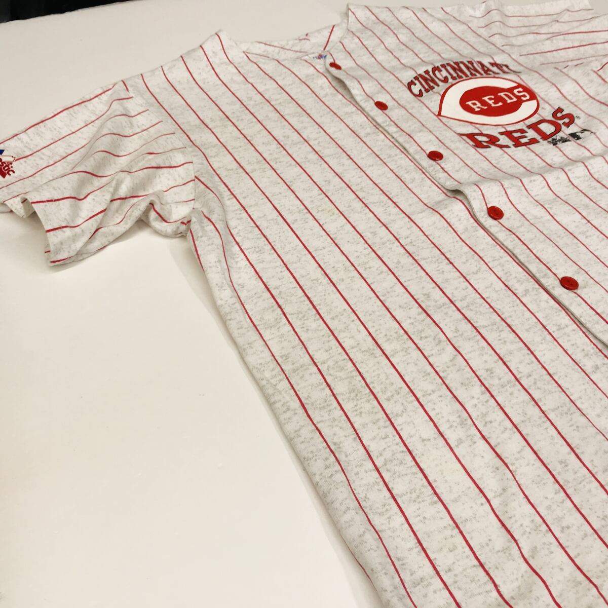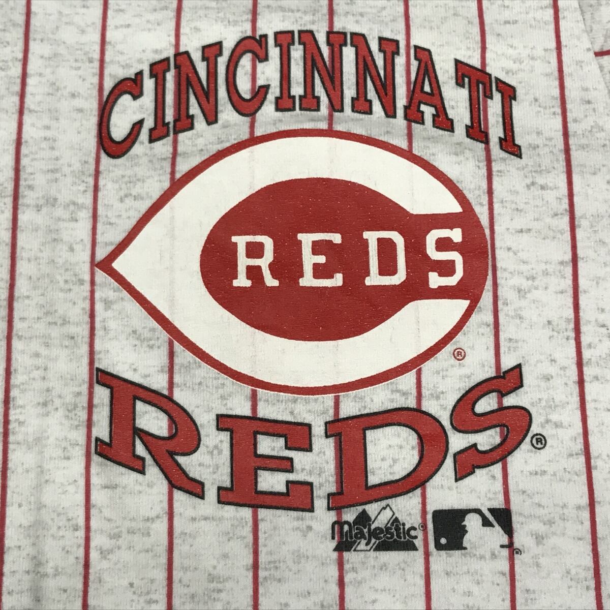 MAJESTIC マジェスティック USA製 シンシナティ・レッズ MLB コットンベースボールシャツ 杢グレー 赤ストライプ L