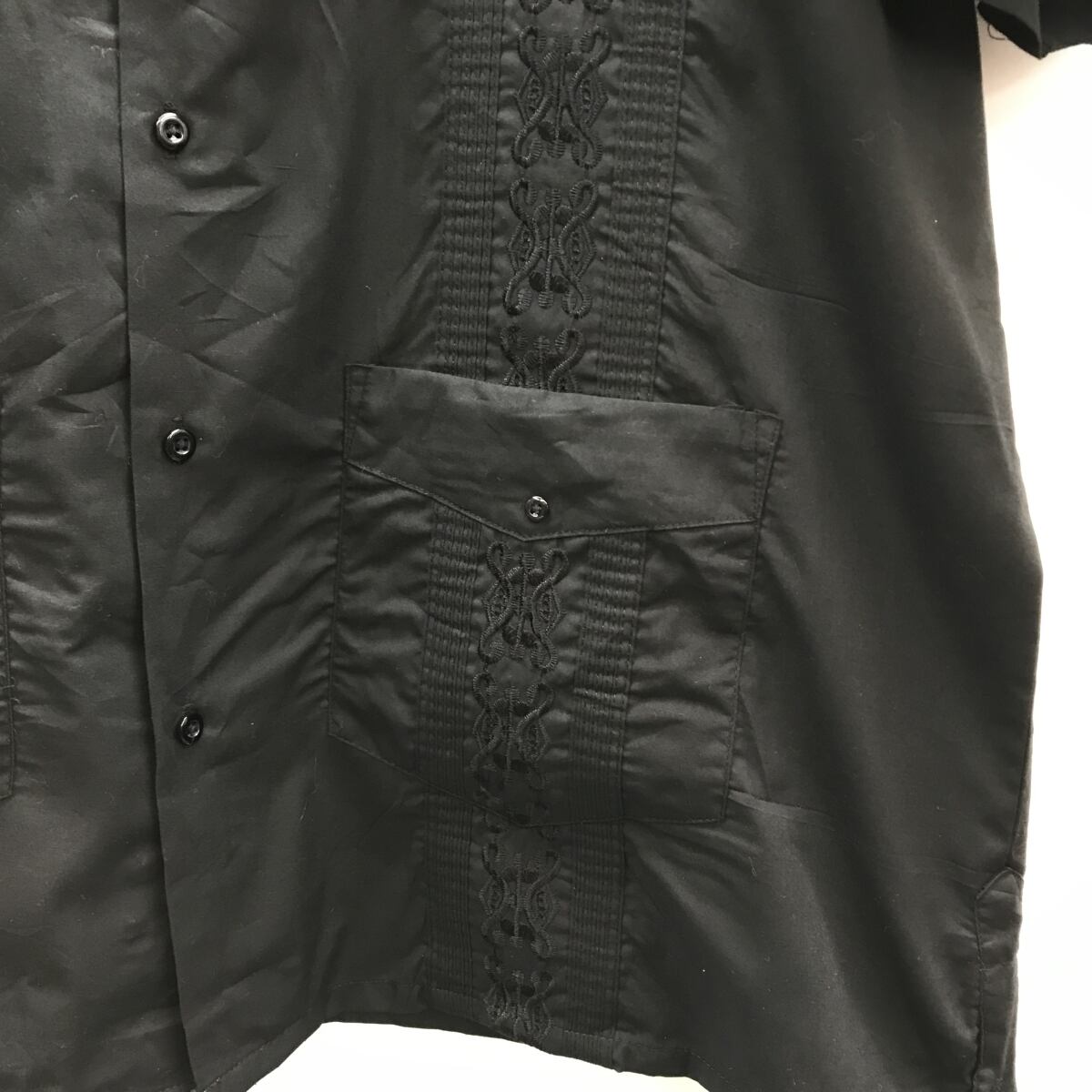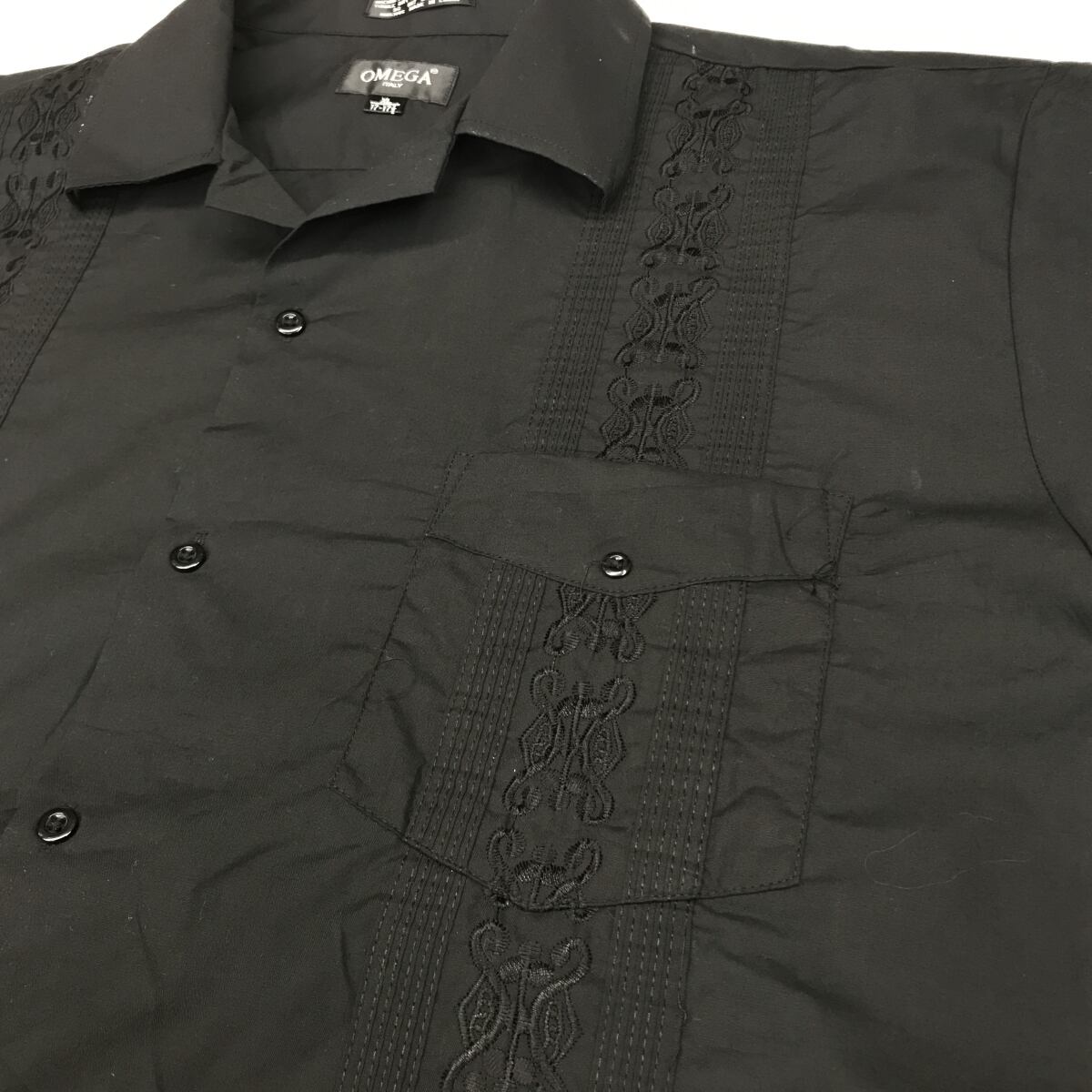 美品!OMEGA オメガ メキシカンシャツ 半袖キューバシャツ オープンカラーシャツ 刺繍入り ブラック XXL