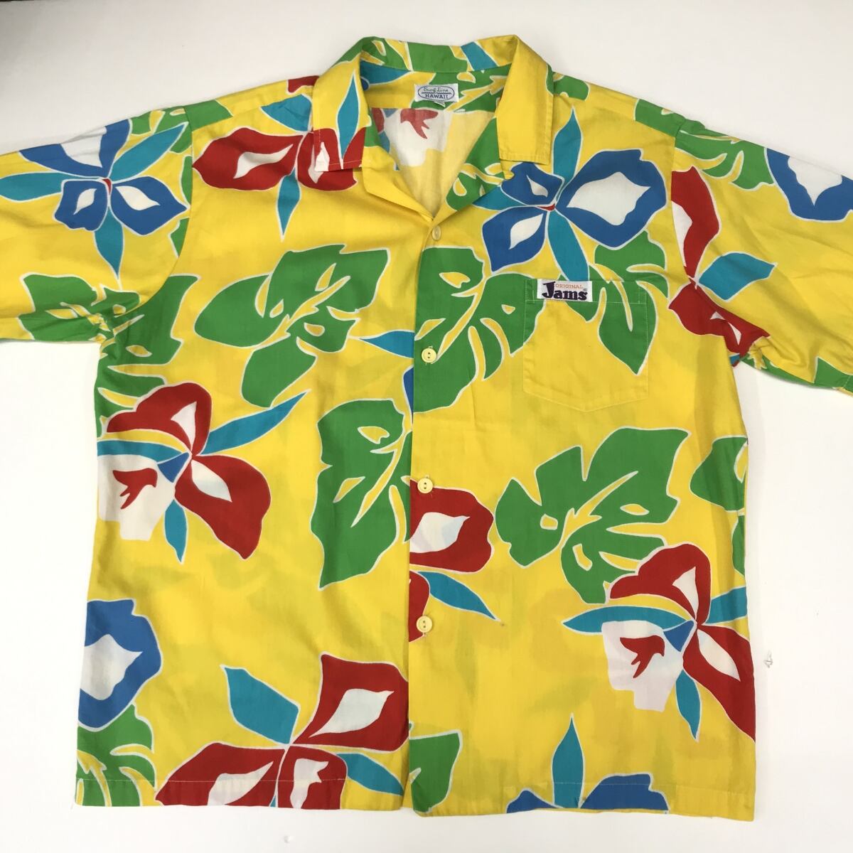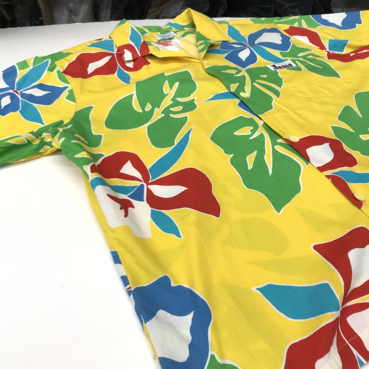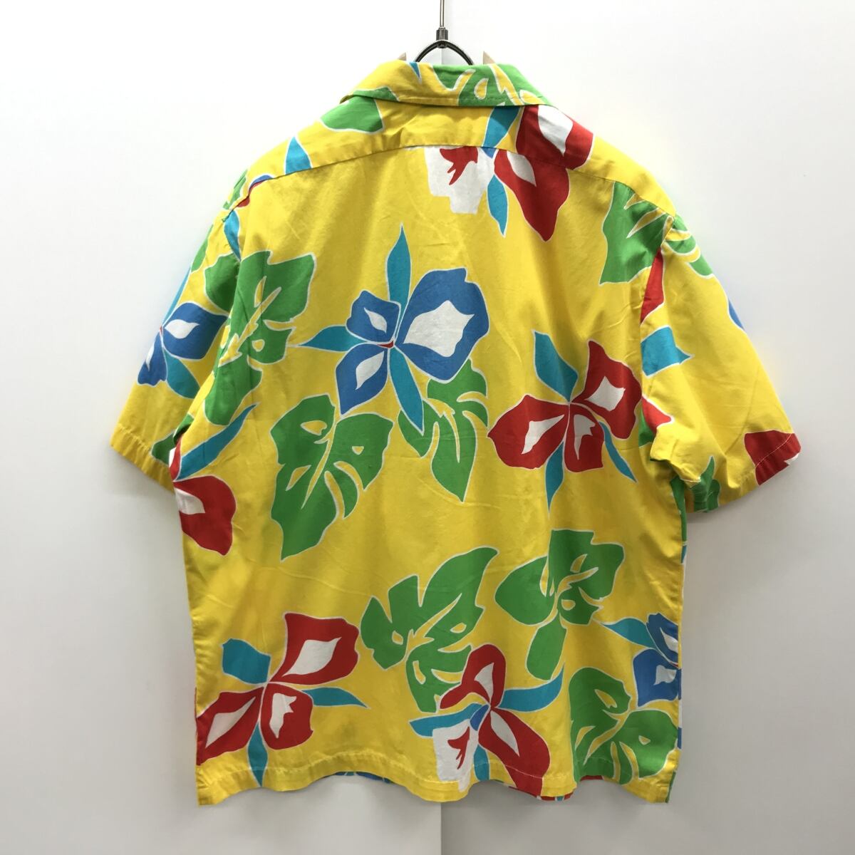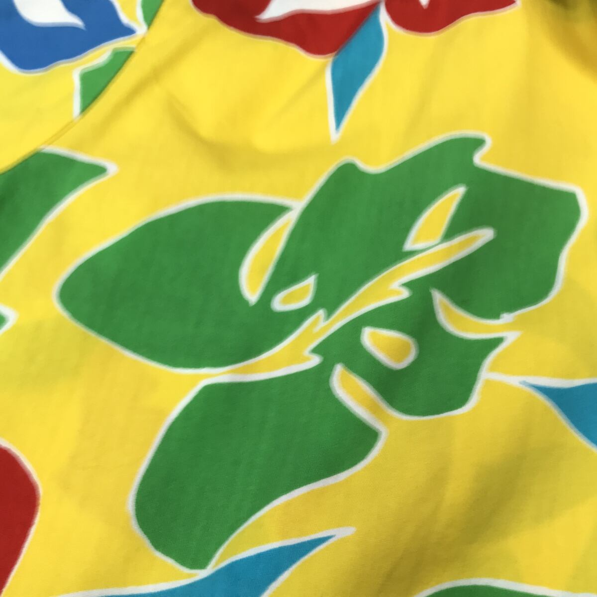 【30%OFF セール】 SURF LINE HAWAII サーフライン 美品!80年代 半袖 総柄シャツ ボタニカル リーフ柄 イエロービビッドカラー アロハシャツ XXL 【SALE】