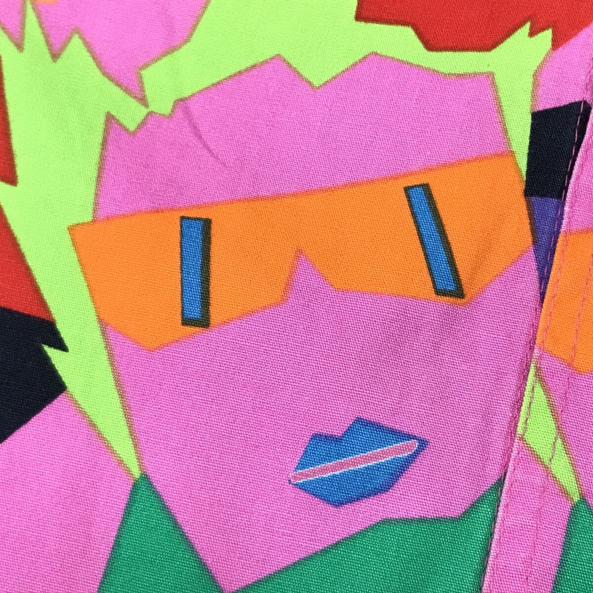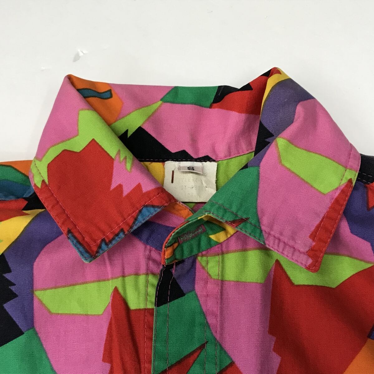 JAMS サーフライン 美品! 80年代 半袖 総柄シャツ テクノポップアート柄 ショッキングピンク他ミックスカラー S アロハシャツ