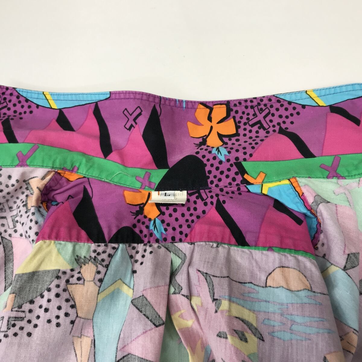 SURF LINE JAMS サーフライン 美品! 80年代 総柄シャツ サーフィン シーサイド柄 パープル ミックスカラー XL アロハシャツ