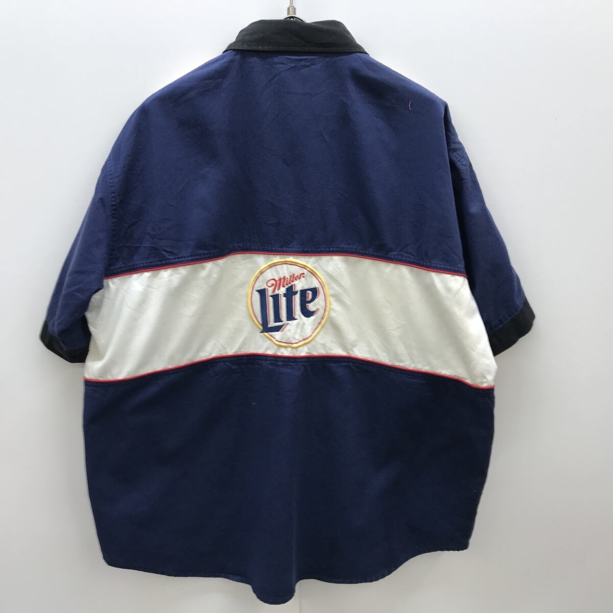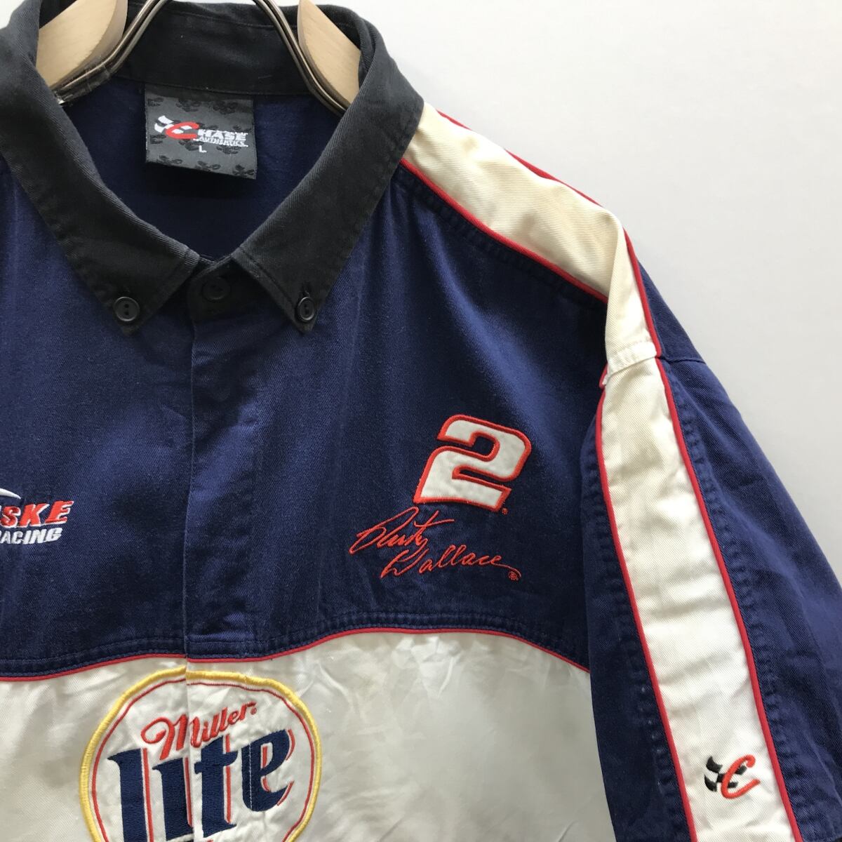 CHASE AUTHENTICS NASCAR RUSTY WALLACE MILLER LITE NO.2 半袖 レーシングシャツ 2トーン バイカラー 白/紺 デザインシャツ XL
