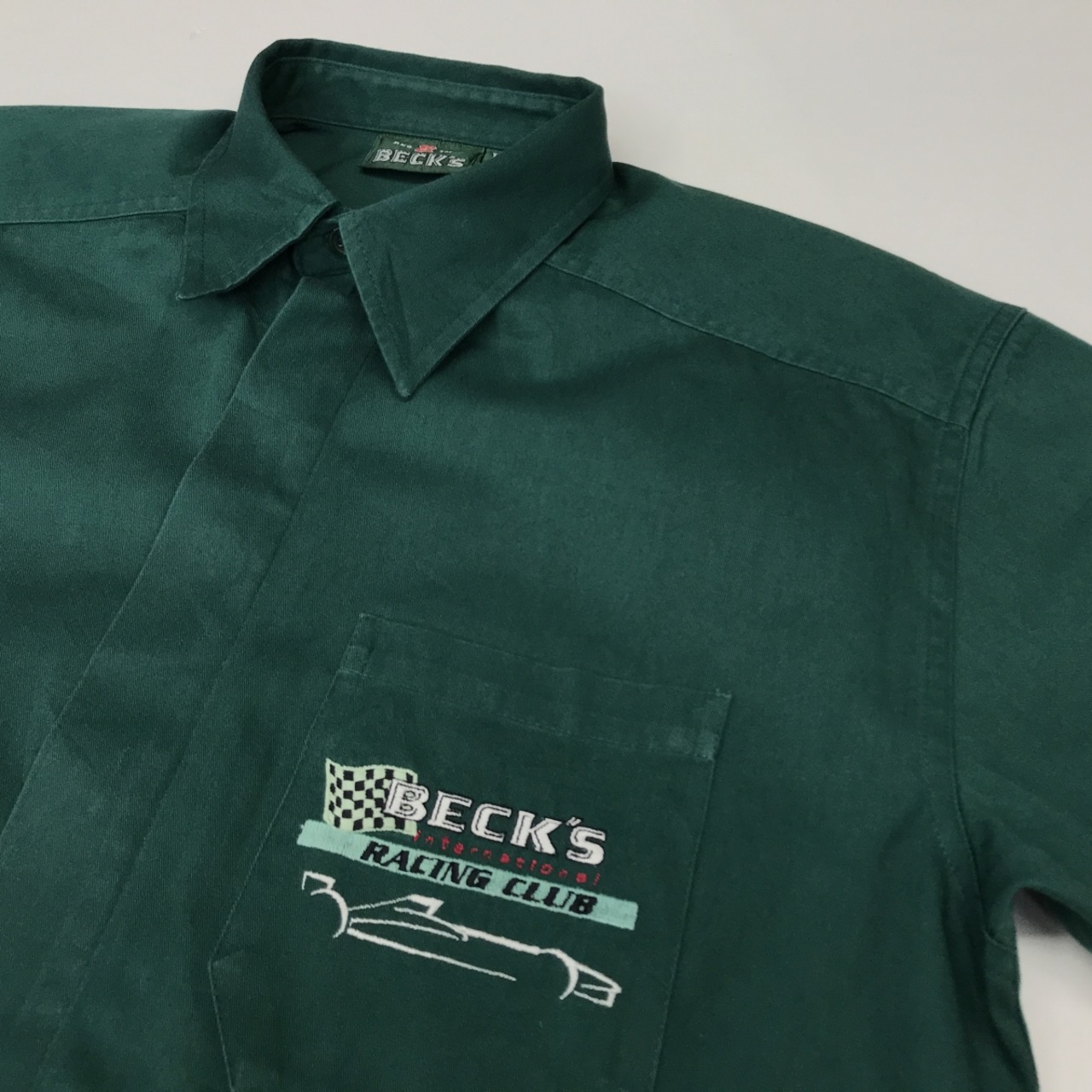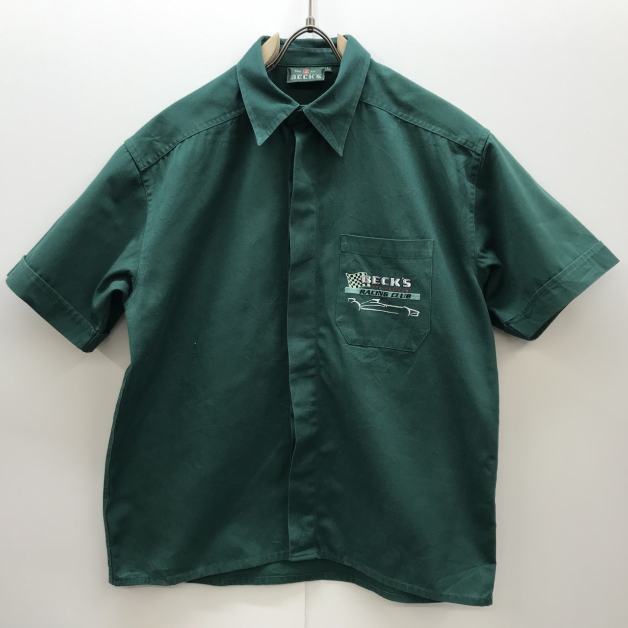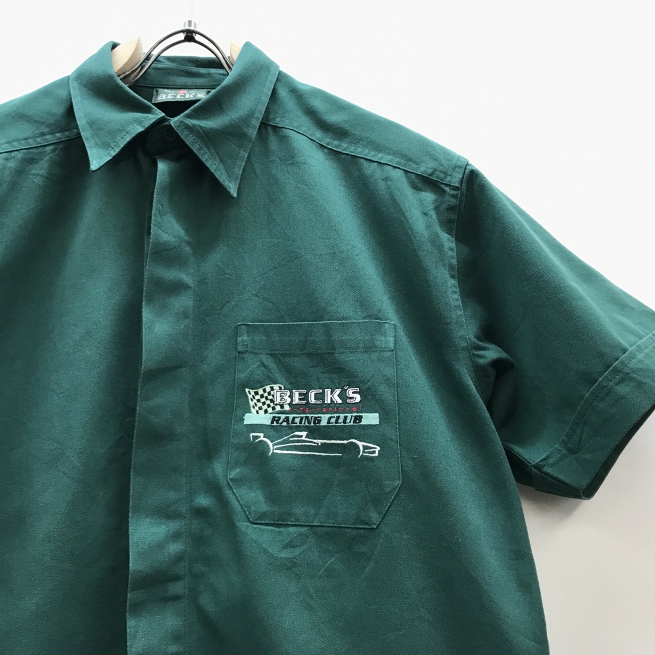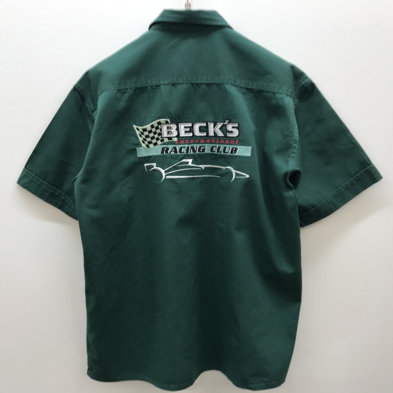 BECK'S INTERNATIONAL RACING CLUB 刺繍入り コットンツイル 半袖レーシングシャツ ワークシャツ ハンターグリーン XL