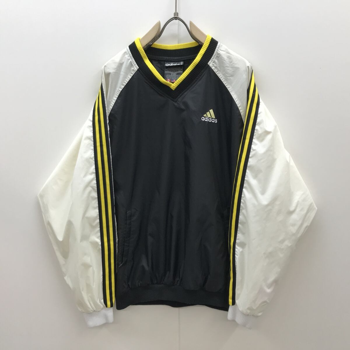 ADIDAS アディダス 80〜90年代 万国旗タグパフォーマンスロゴ ワンポイント刺繍入り Vネック ナイロン プルオーバー ジャケット