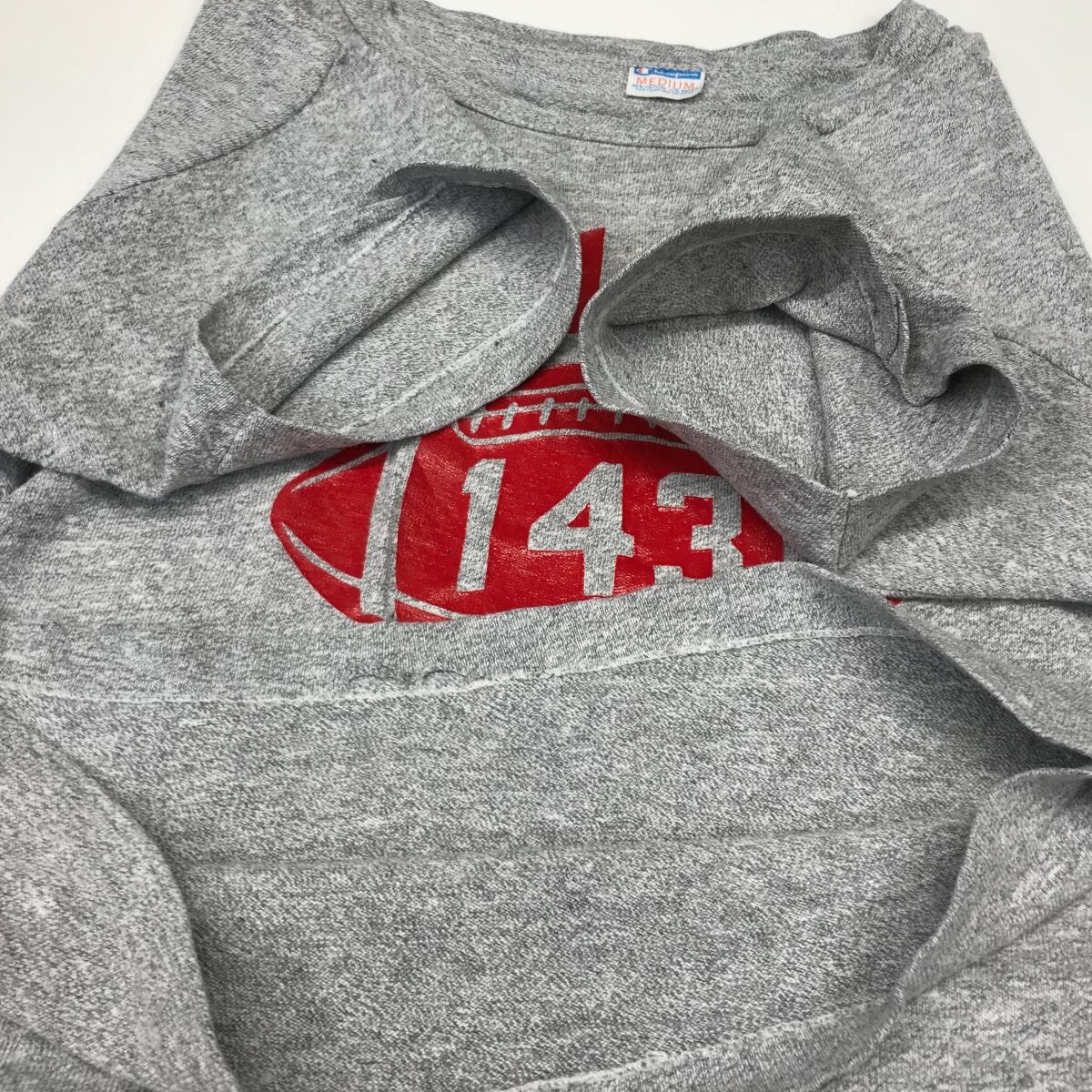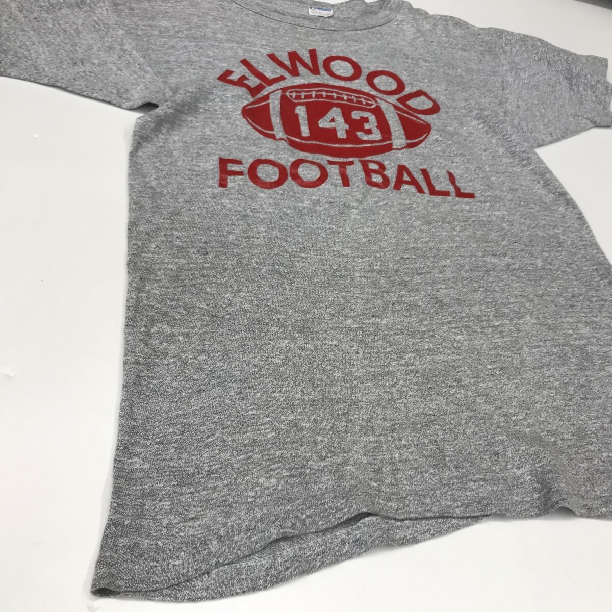 美品!チャンピオン 70〜80年代 88/12 後期バータグ ELWOOD FOOTBALL カレッジプリント ビンテージTシャツ アッシュグレー 杢グレー XS