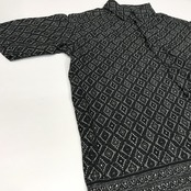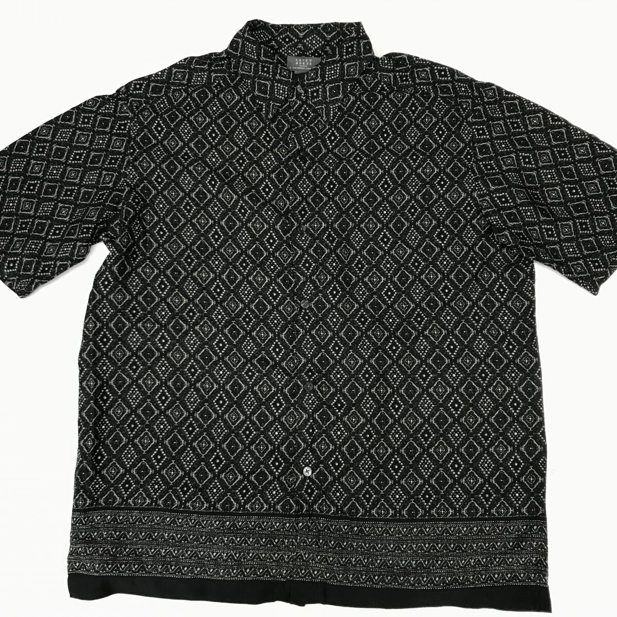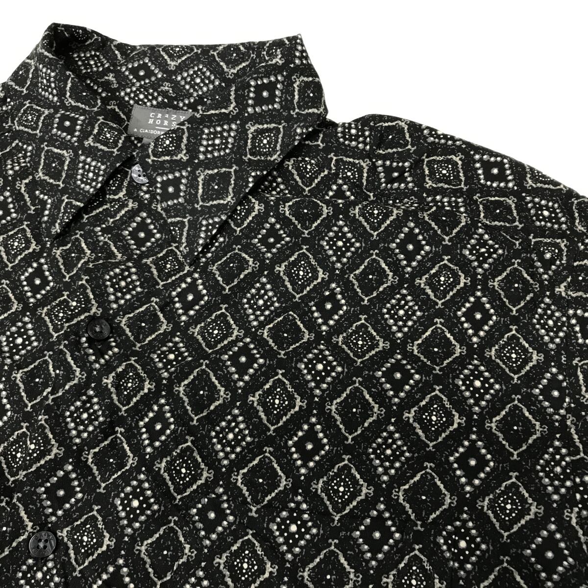 クレージーホース レーヨン アラベスク 連続ひし形 総柄シャツ ブラック XL