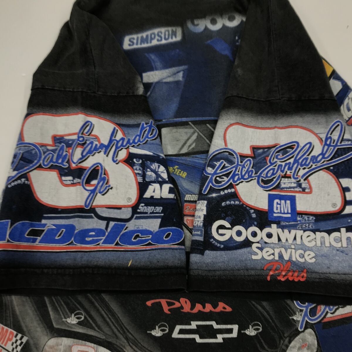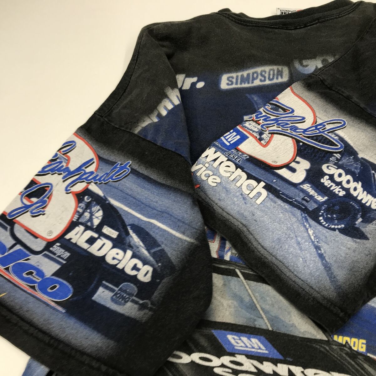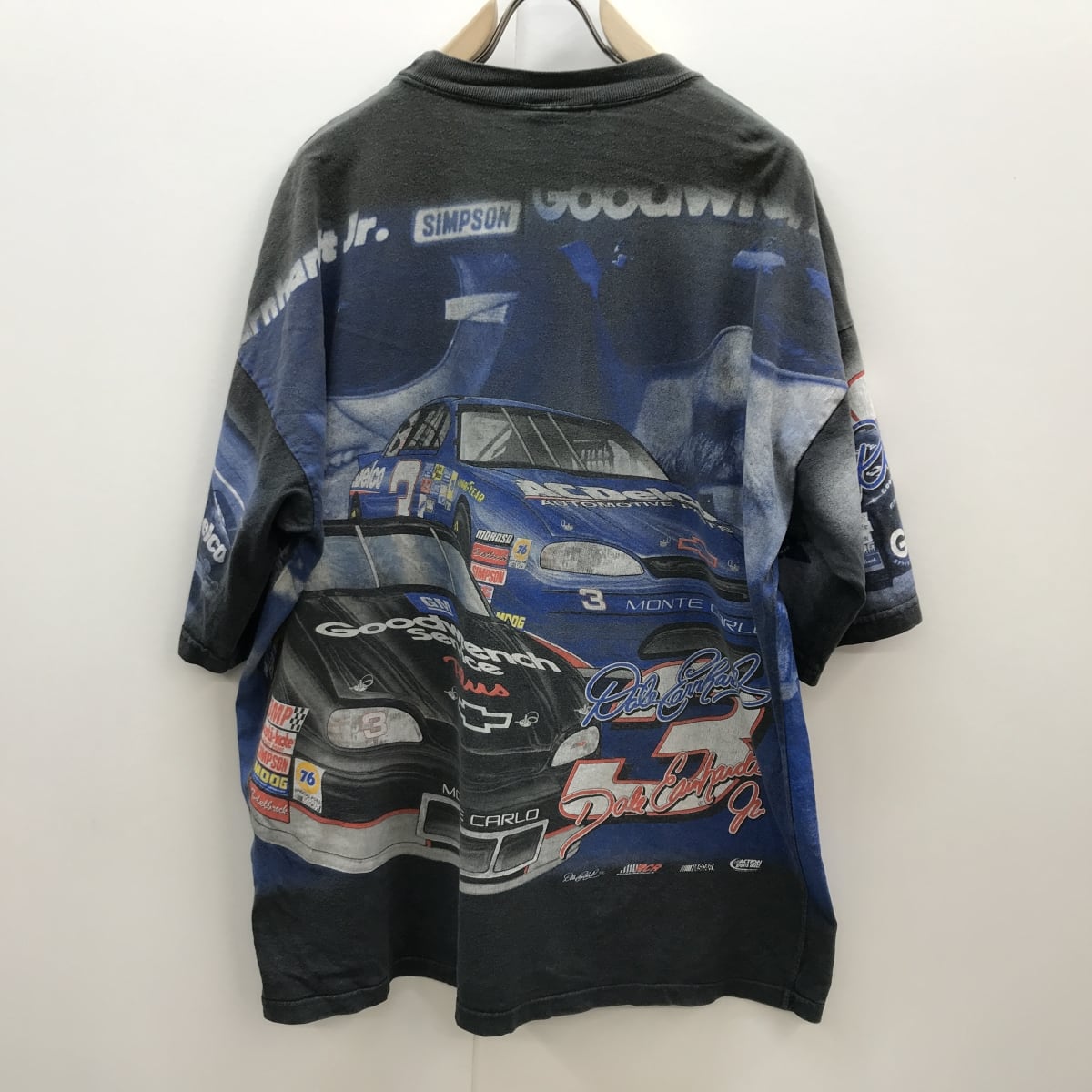 CHASE AUTHENTICS USA製 DALE EARNHARDT、DALE EARNHARDT JR. No.3 贅沢TWO FACE 両面ビッグプリント入り半袖Tシャツ ブラック XL