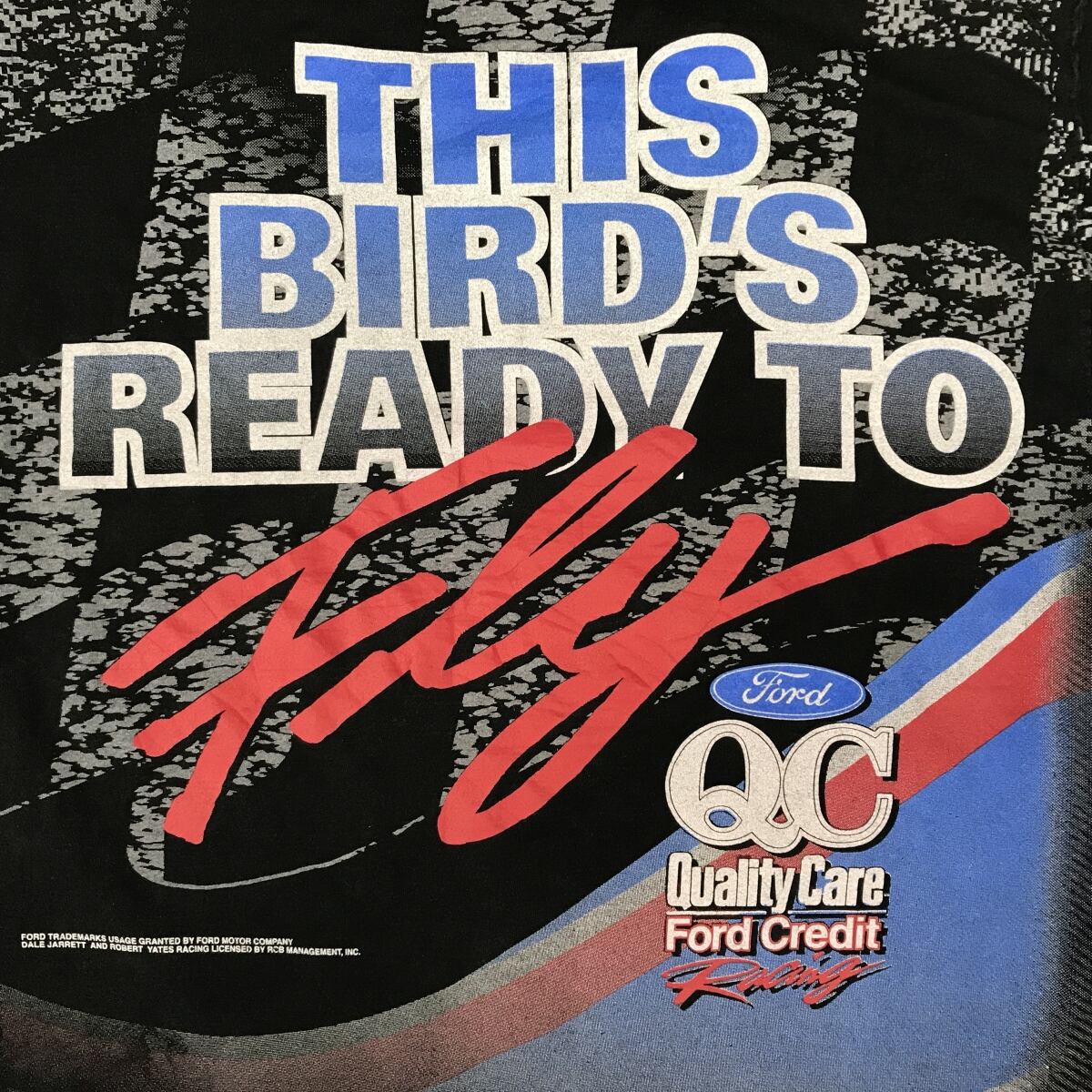 AUTHENTICS USA製 NASCAR DALE JARRETT #88 デイル ジャレットQC QUALITY CARE FORD HUNDERBIRD 両面ビッグプリント入り半袖Tシャツ レーシングTシャツ ブラック XXL