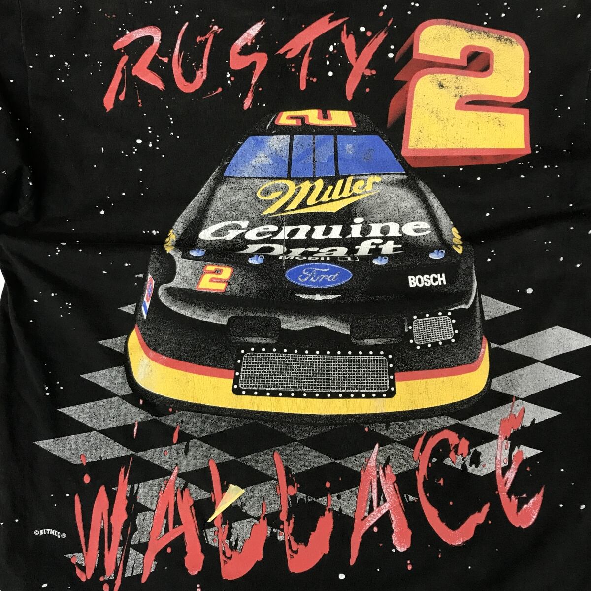 NUTMEG ナツメグ 90年代 USA製 NASCAR RUSTY WALLACE 2 両面ビッグプリント半袖Tシャツ レーシングTシャツ ミラービール ブラック XL