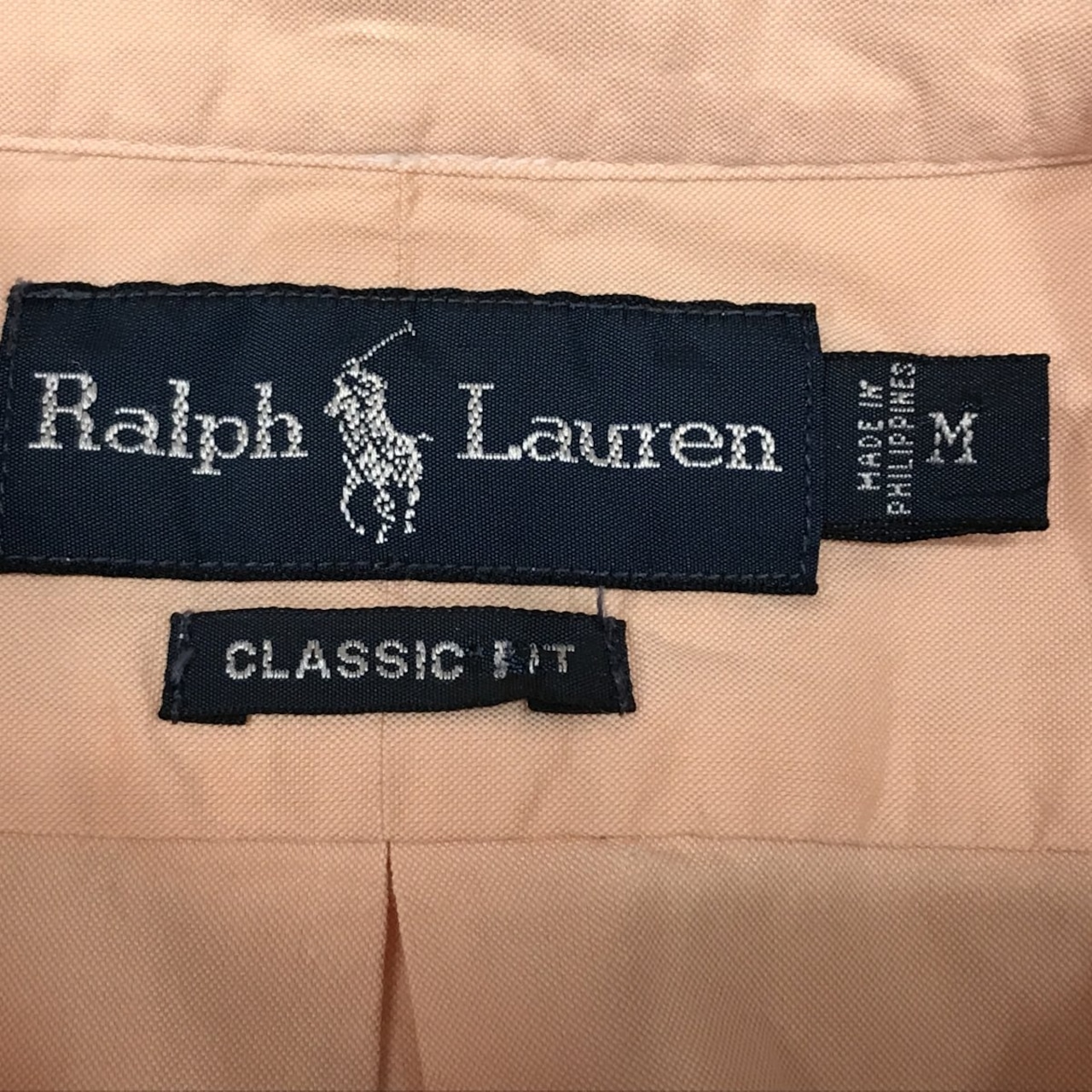 [SALE] ラルフローレン 90年代 半袖コットンシャツ ボタンダウンシャツ ワンポイント ロゴ 刺繍 旧タグ US Mサイズ うすいサーモンピンク!