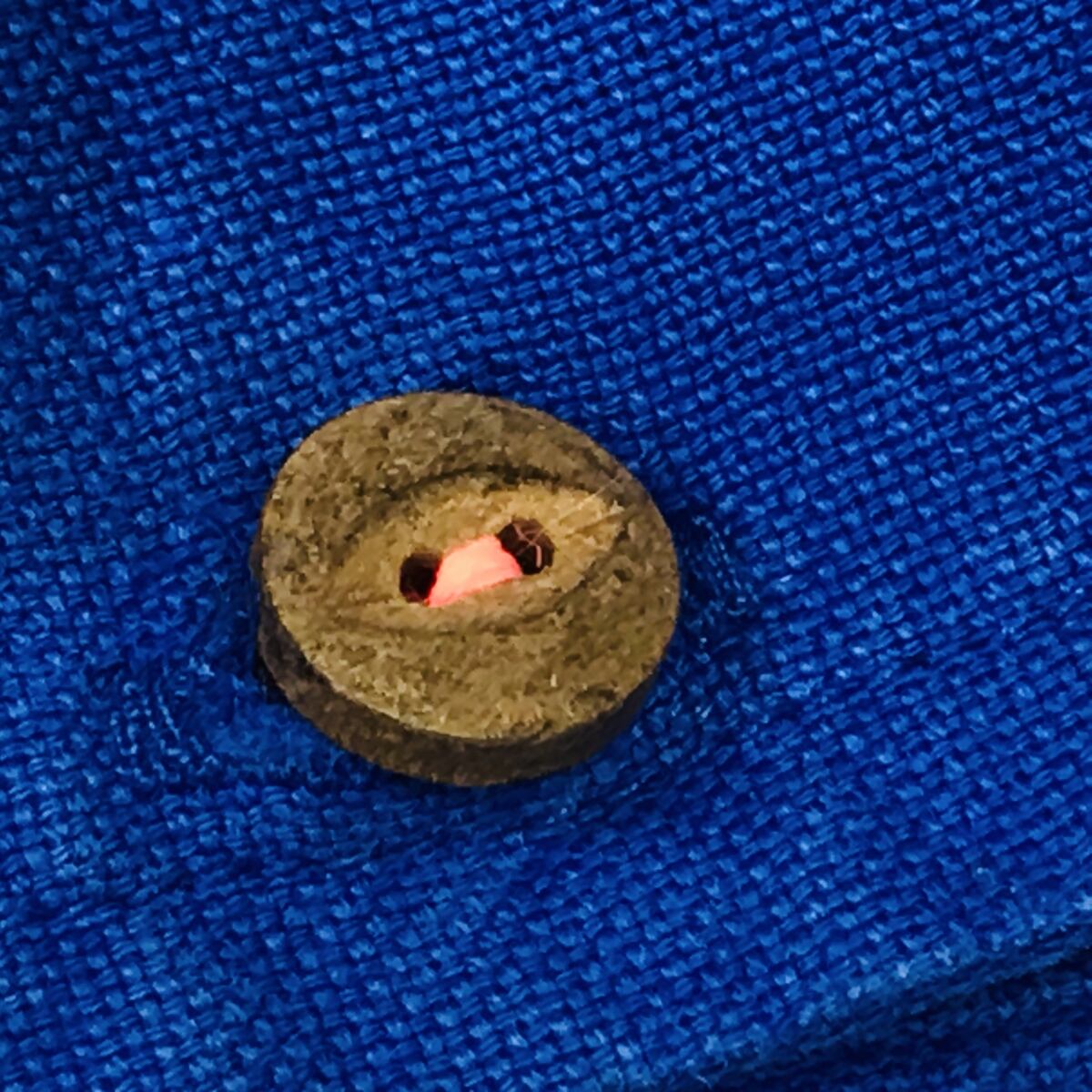 襟後ろの留めボタンがウッドボタン(ヤシボタンっぽい)で