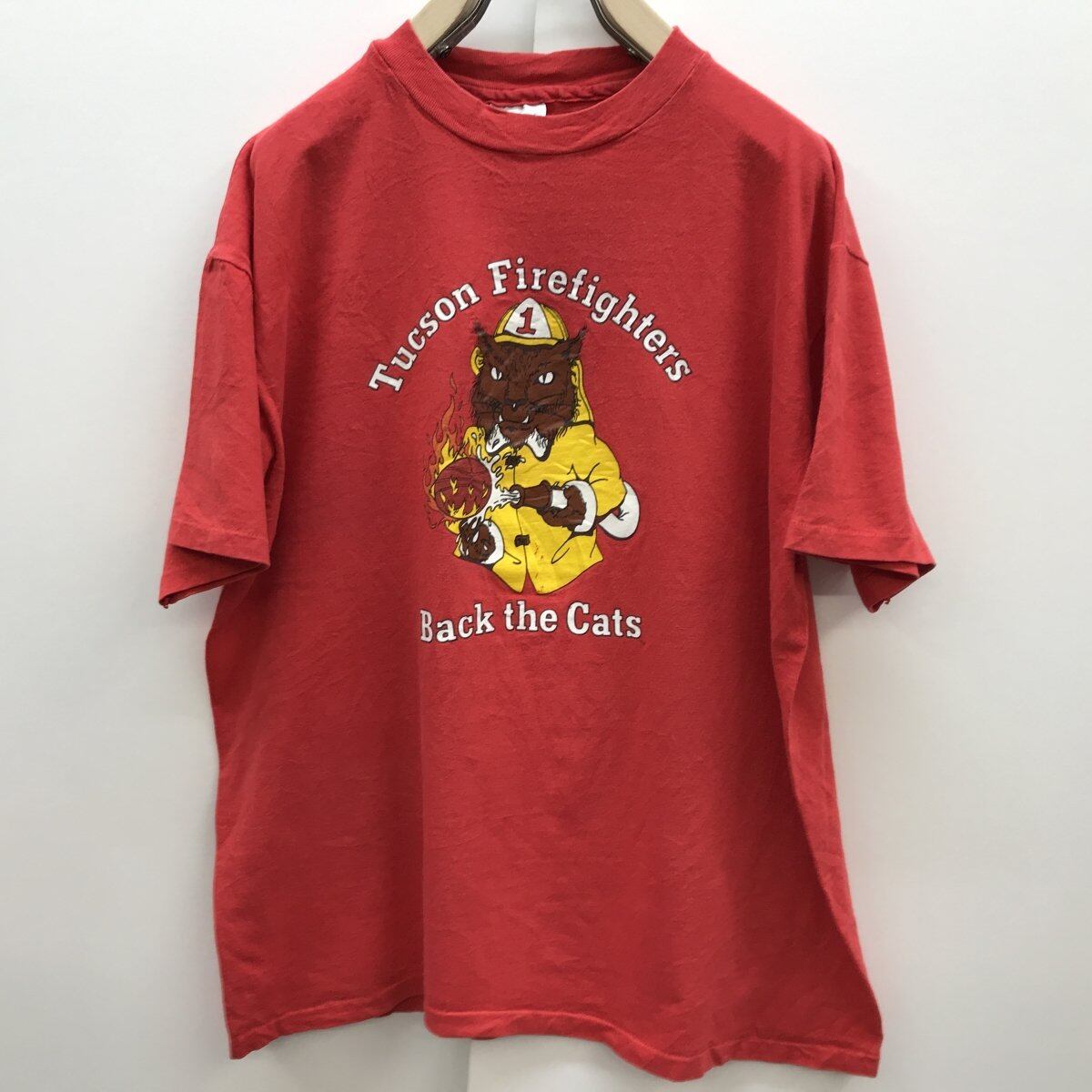 ヘインズ 80年代 USA製 TUCSON FIREFIGHTERS BACK THE CATS BASKET BALL Tシャツ レッド XL