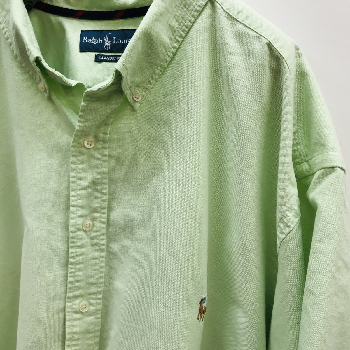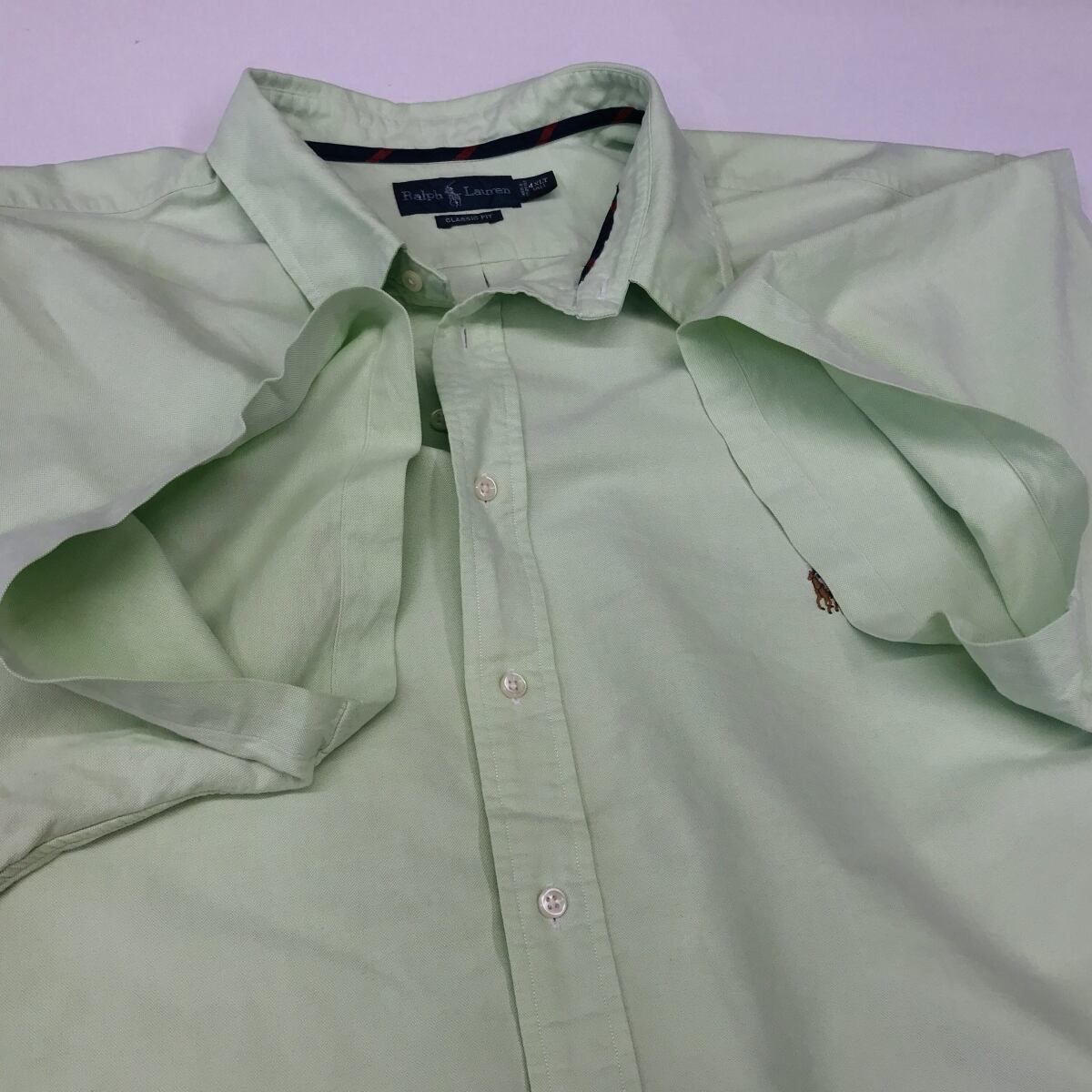 Ralph Lauren ラルフローレン CLASSIC FIT コットンオックスフォード 半袖シャツ ボタンダウンシャツ アイスメロングリーン4XL 超・ビッグサイズ!