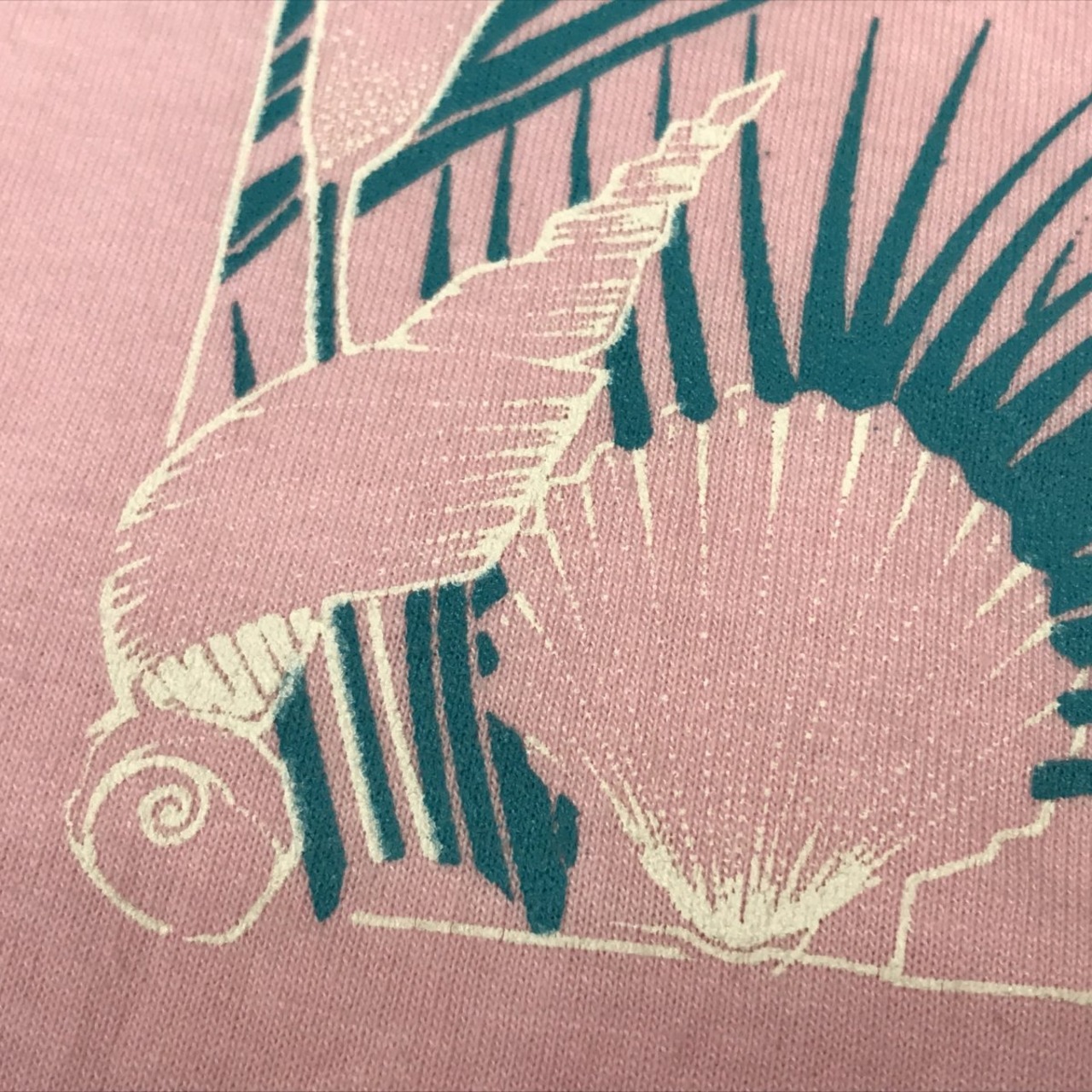 貝殻とアイリスの花がやさしい細い線でプリントされていますが