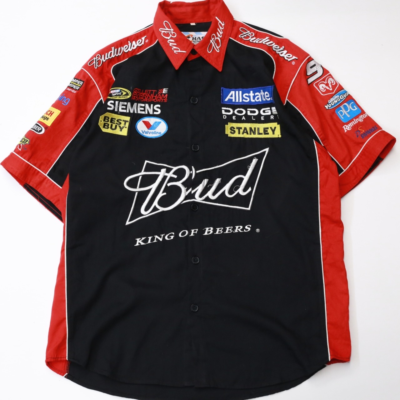 バドワイザーの「bud」の刺繍がかっこいいレーシングシャツです。