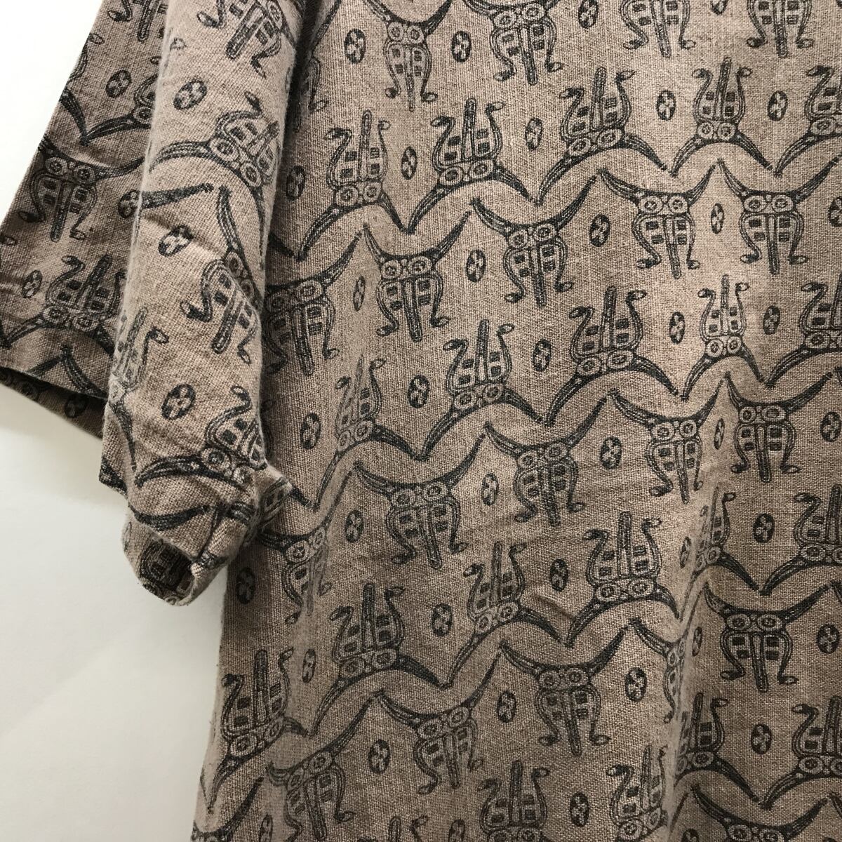 アジアン 90年代 ビンテージ エスニック プルオーバー ノーカラシャツ 半袖 スタンドカラーシャツ L