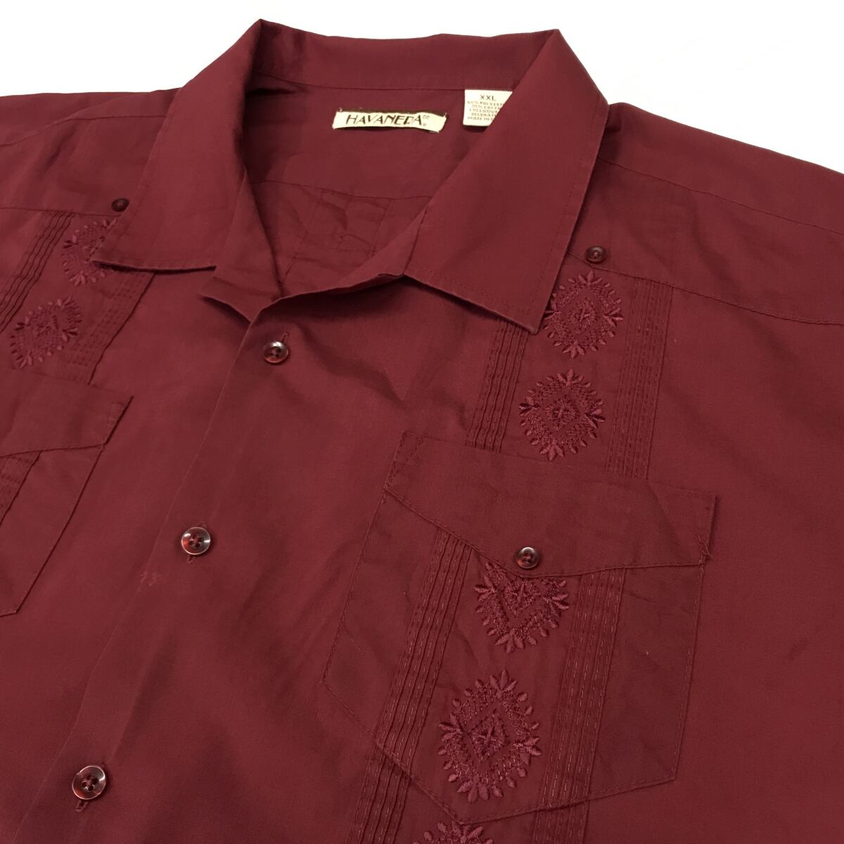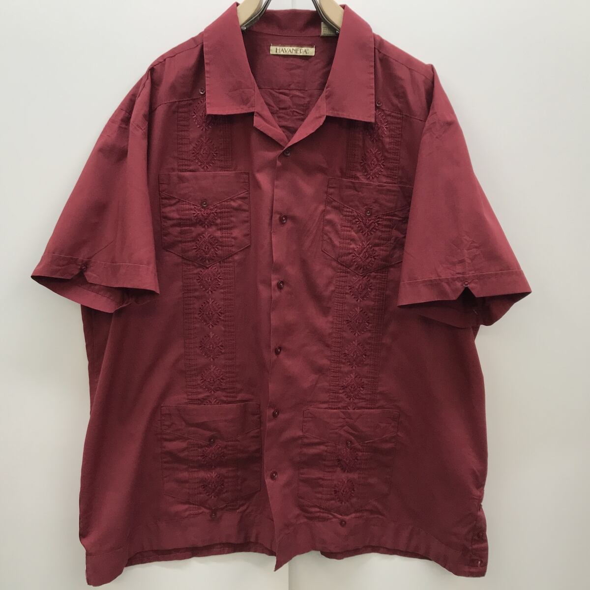 【30%OFF セール】 HAVANERA ハバネラ 90〜00年代 半袖キューバシャツ GUAYABERA SHIRTS えんじ色 XXL ビッグサイズ 【SALE】