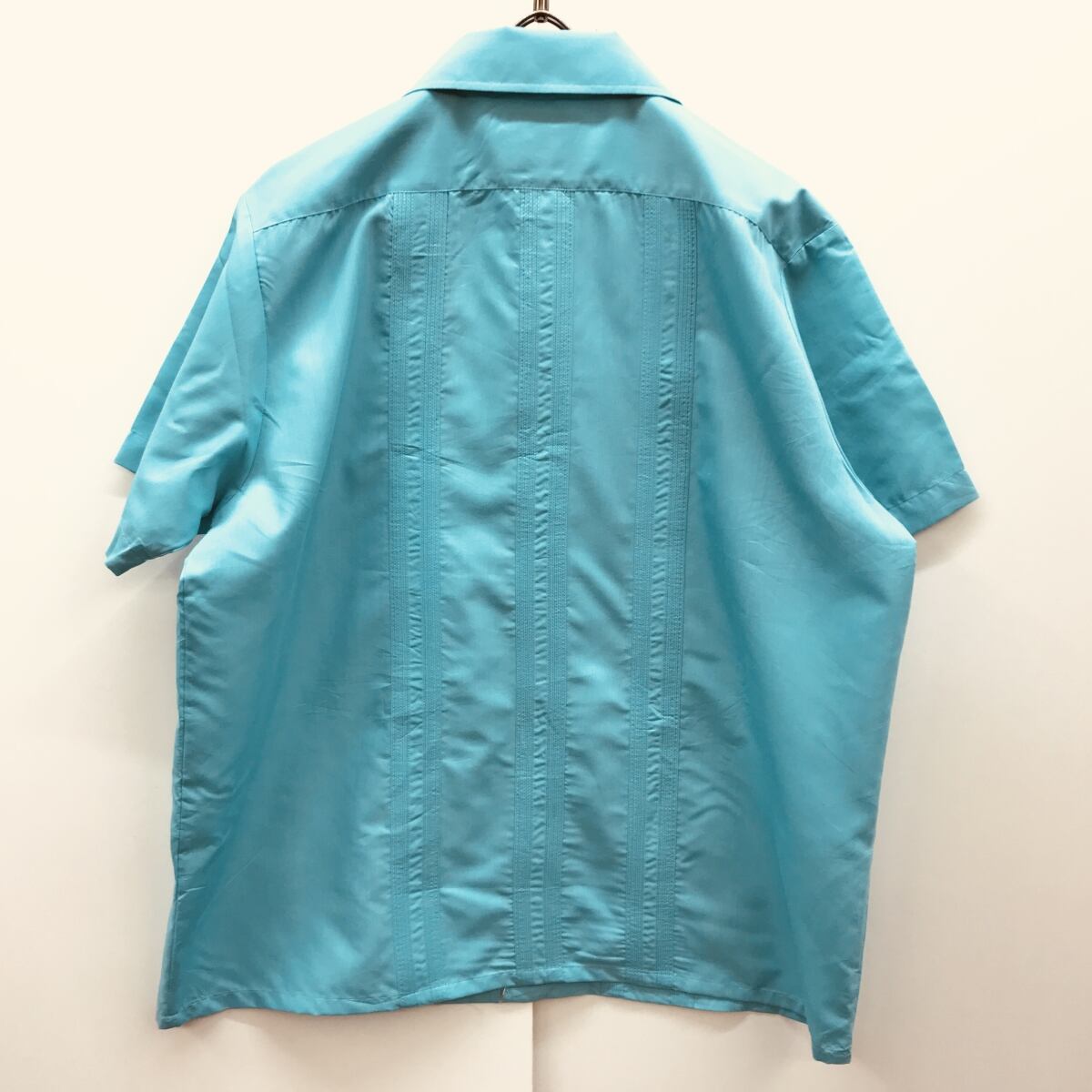 HABAND GUAYABERA 美品!80〜90年代 襟芯 ジップアップ 半袖キューバシャツ GUAYABERA SHIRTS エメラルドブルー XL