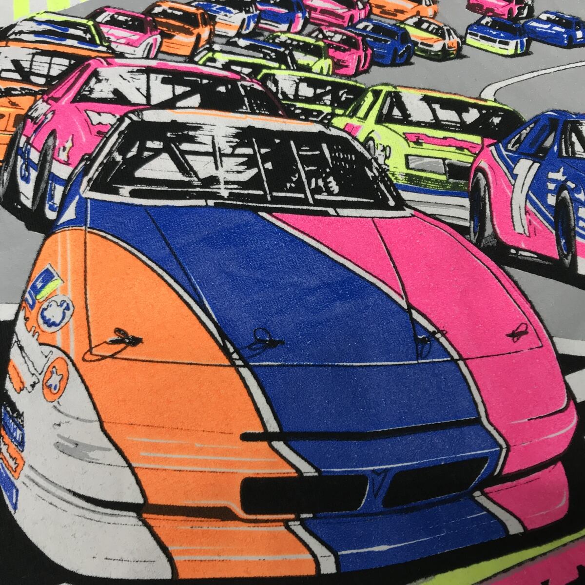 FRUIT OF THE LOOM|フルーツオブザルーム 80〜90年代 USA製 タンクトップ NASCAR SUNDAY RUSH HOURS 蛍光プリントTシャツ カーレース ブラック XL