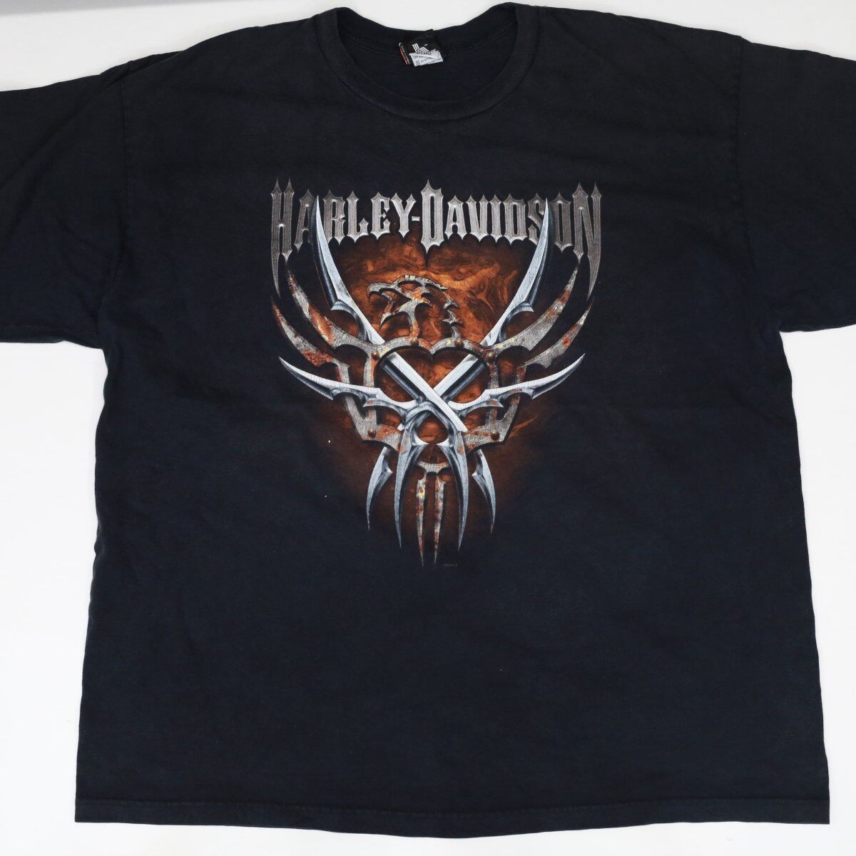 [SALE] ハーレーダビットソン 00年代 USA製 半袖 Tシャツ 牛 骨 イーグル アイアン ブラック 3XL