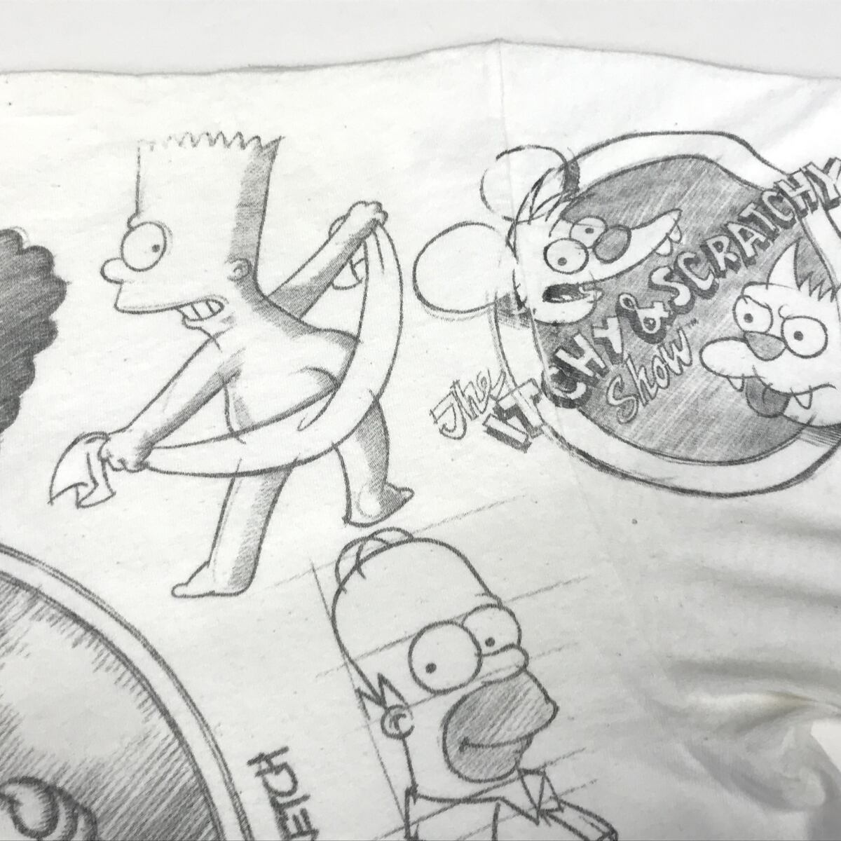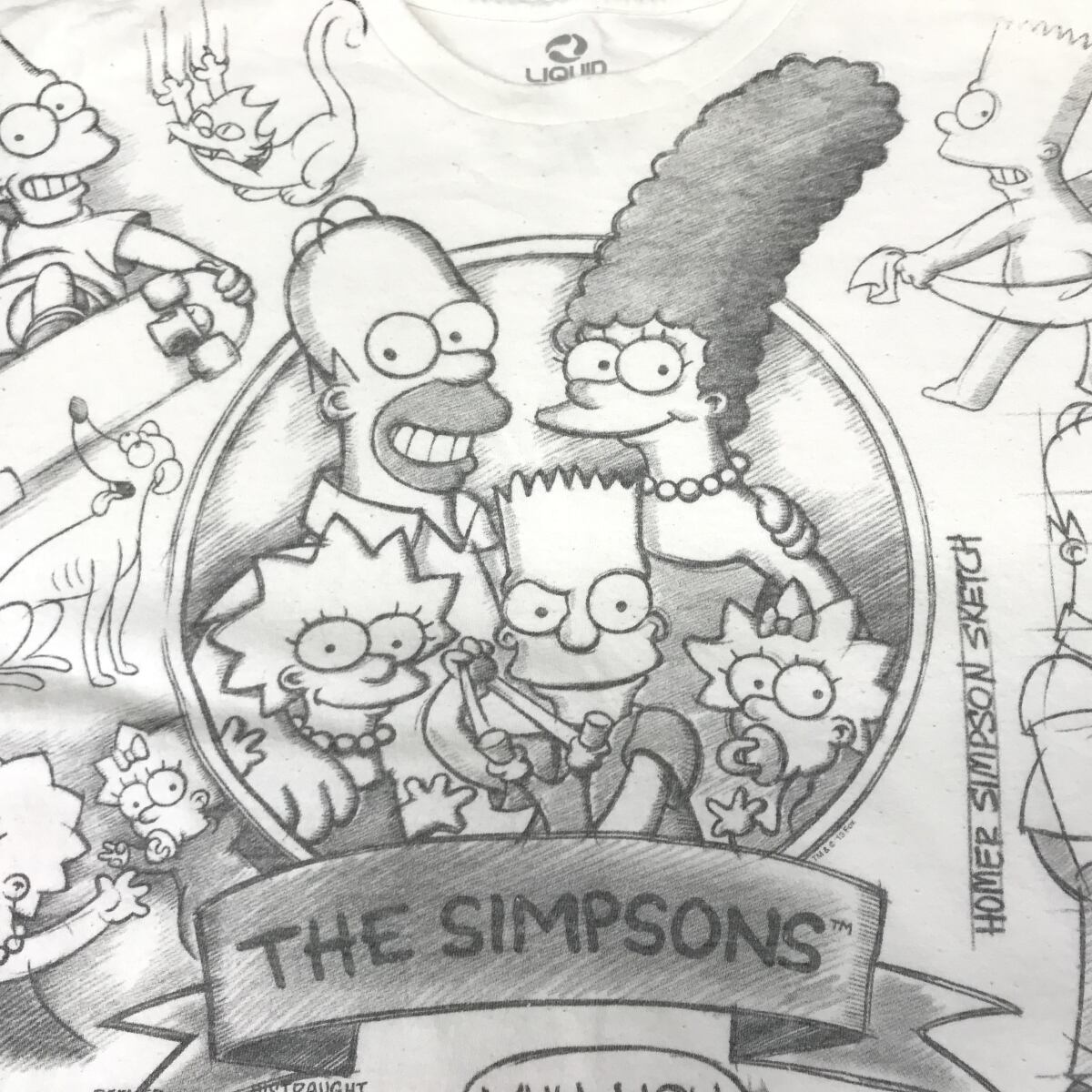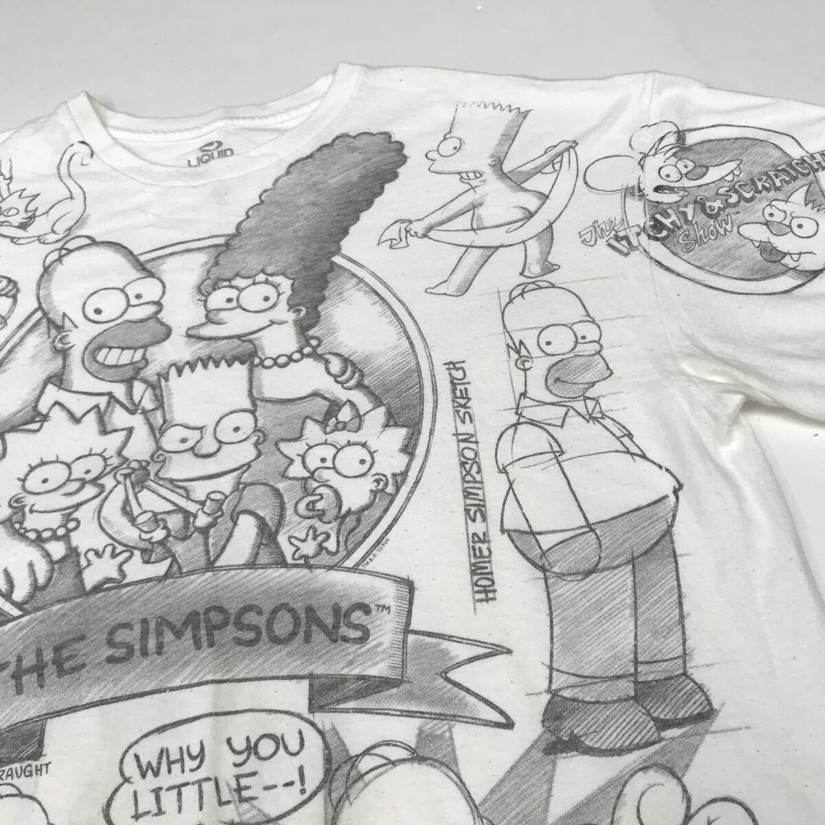 リキッドブルー THE SIMPSONS シンプソンズ スケッチ風 総柄 全柄 半袖Tシャツ ホワイト XL