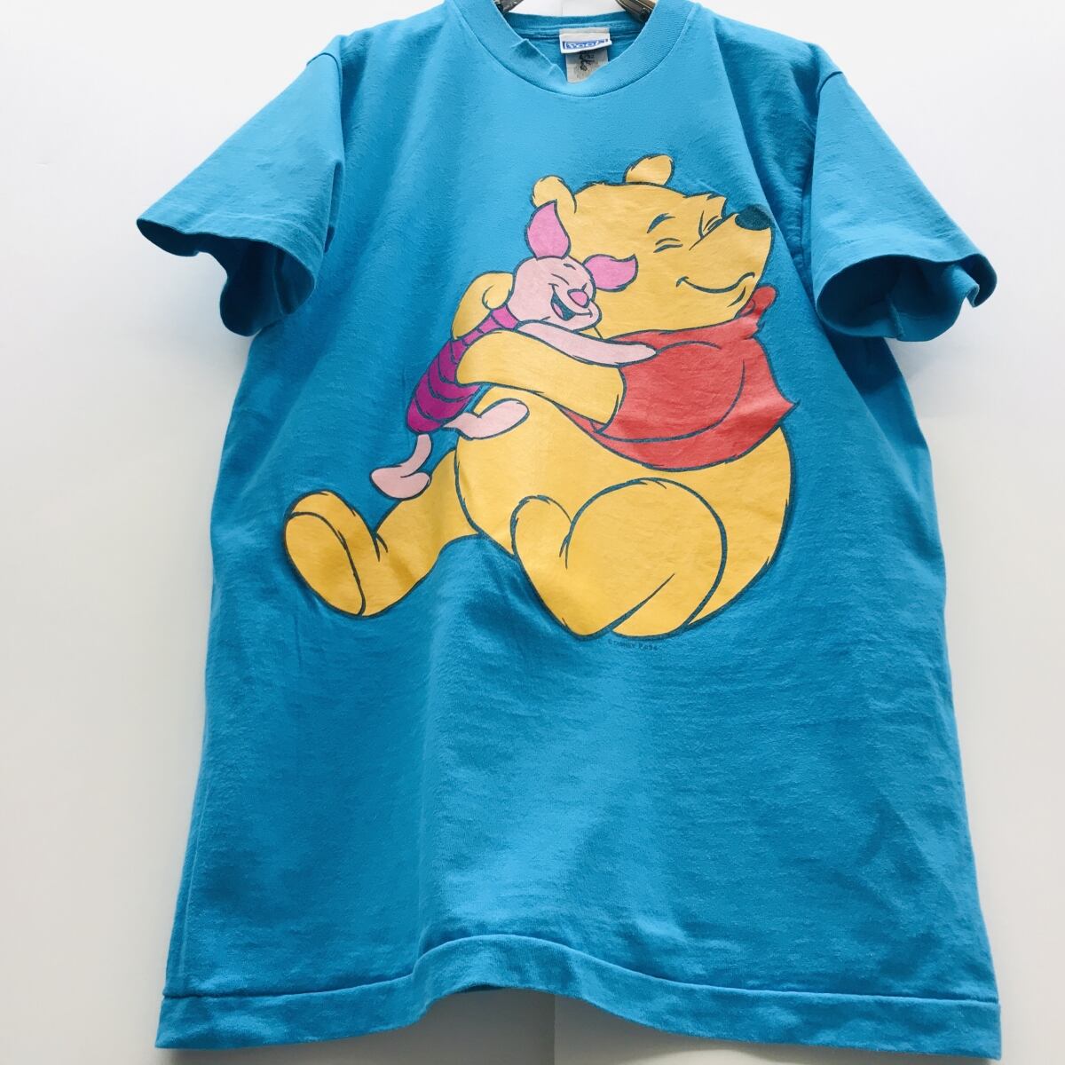 POOH 90年代 USA製 くまのプーさんとピグレット 仲良し 半袖 ビッグプリントTシャツ ターコイズブルー L