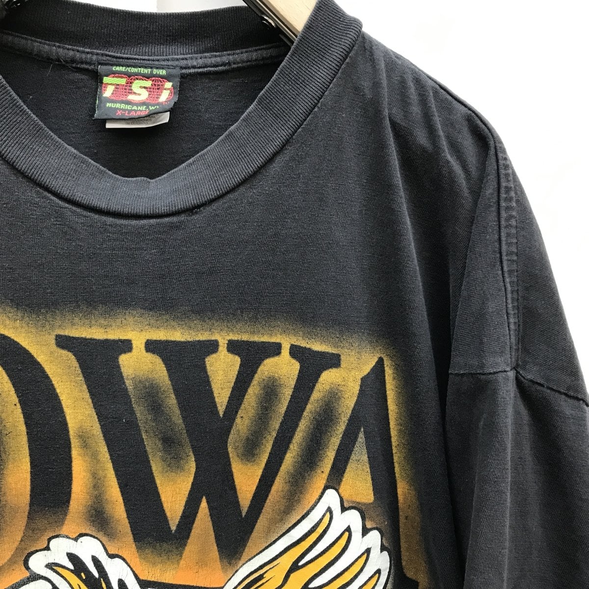 [SALE] ティーエスアイ 90年代 IOWA HAWKEYES アイオワ ホークアイズ ハーキー キャラクターTシャツ ブラック XXL