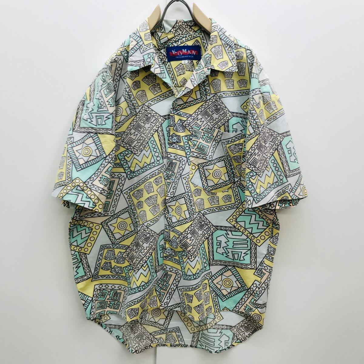 KOMAN コーマン 80〜90年代 USA製 ポップ 80's POP ART デザイン シャーベットミックスカラー 総柄半袖シャツ XL