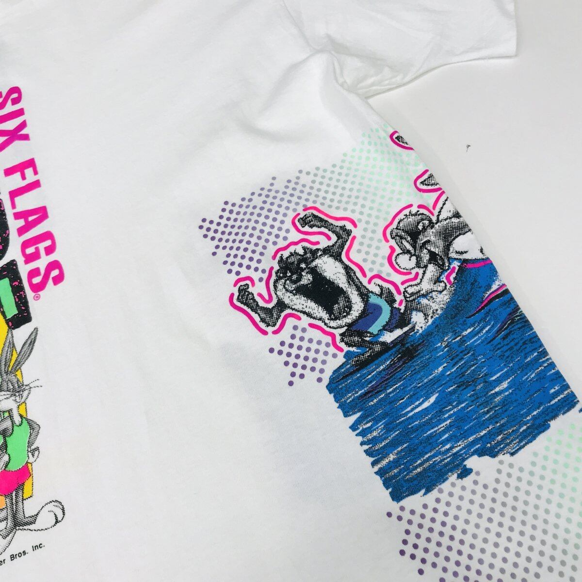 ルーニー・テューンズ 90年代 ビンテージ サーフィン柄 半袖Tシャツ SURF SIX FLAGS 白 ML