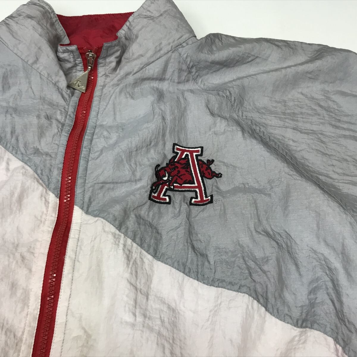 [SALE] RED OAK レッドオーク 90年代 ARKANSAS RAZORBACKS アーカンソー大学 ロゴ刺繍 切り替え バイカラー しわ加工 ナイロンジップジャケットXXL