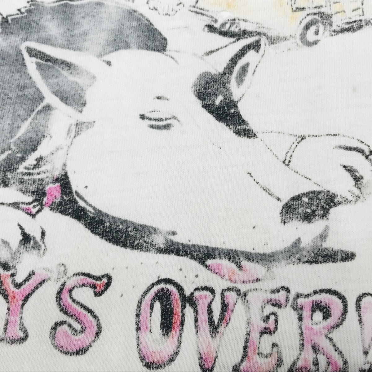 80年代 ビンテージ HEY,SPUDS ! THE PARTY IS OVER 轢かれた マッケンジー? 半袖Tシャツ 白 XL