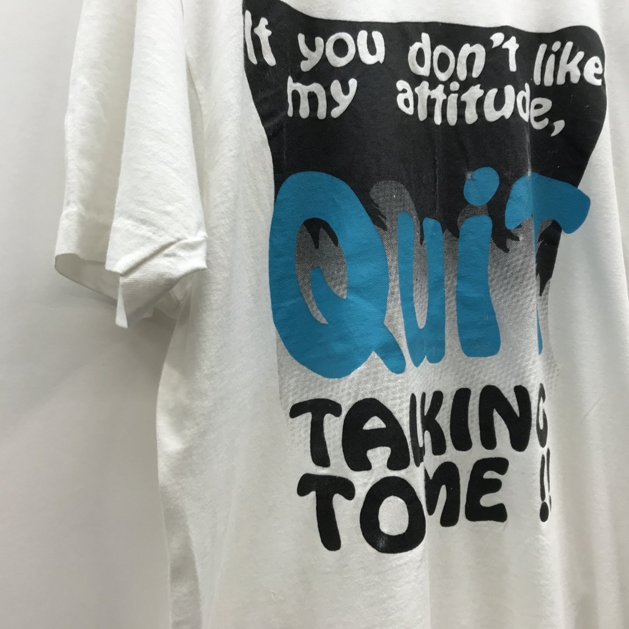 FRUIT OF THE LOOM|フルーツオブザルーム 80年代 USA製 ダメージ・メッセージ半袖Tシャツ ホワイト L