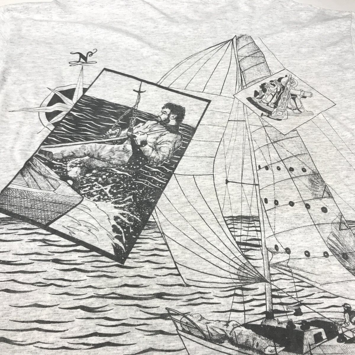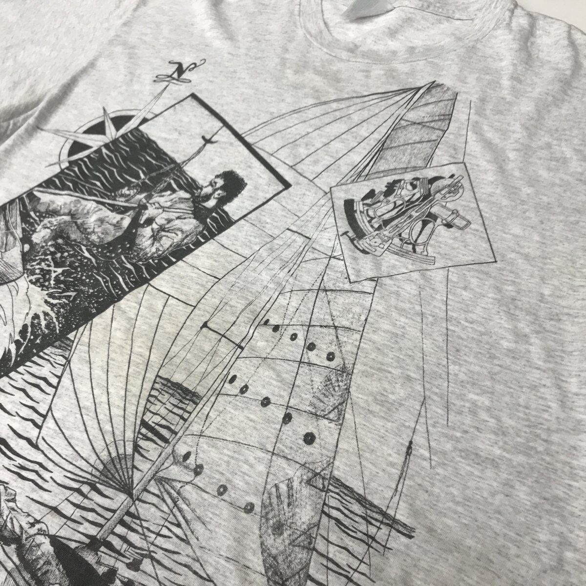 ヘインズ 90〜00年代 USA製 燃える男のセイリング・タッキング・ジャイビング!半袖両面プリントTシャツ アッシュグレー XL
