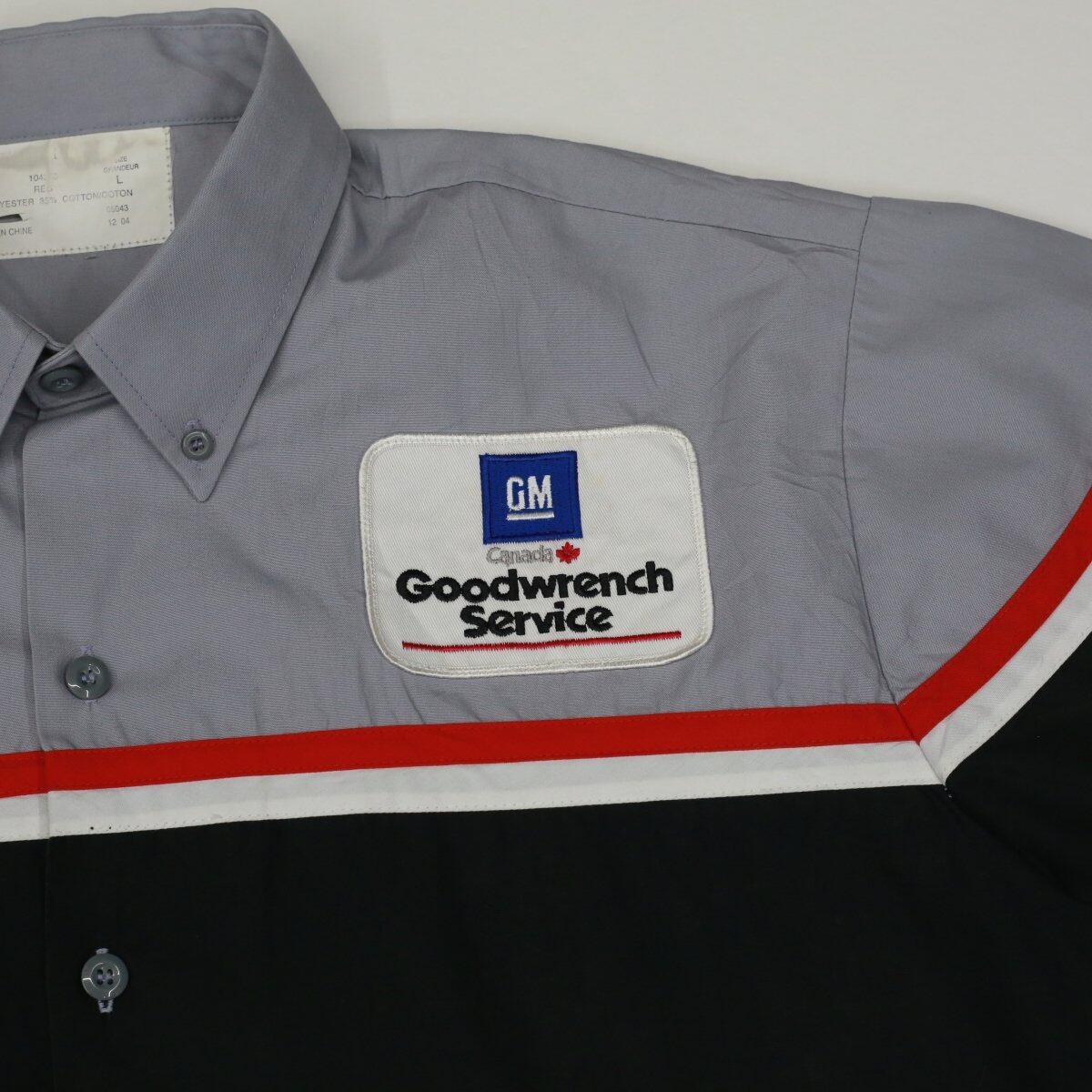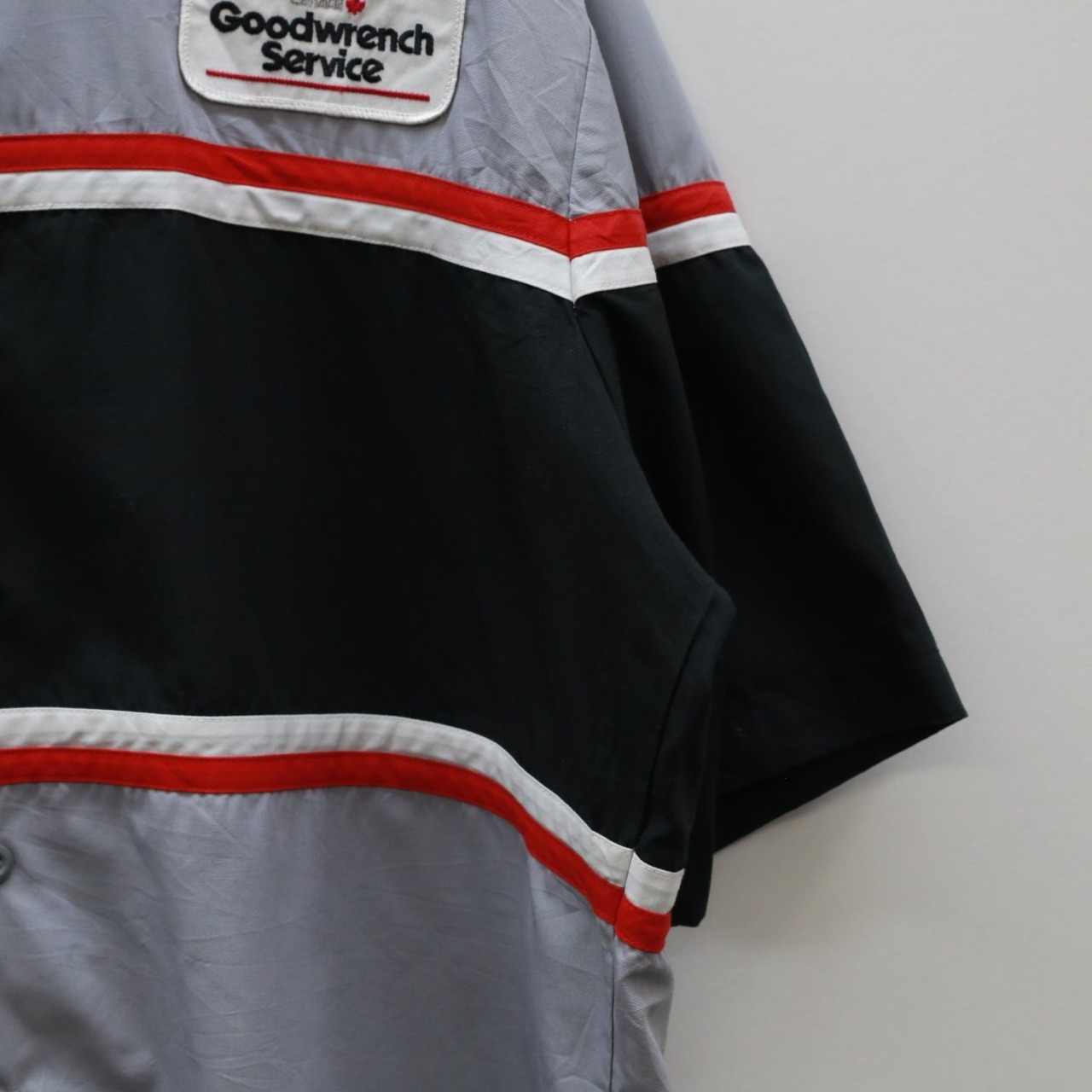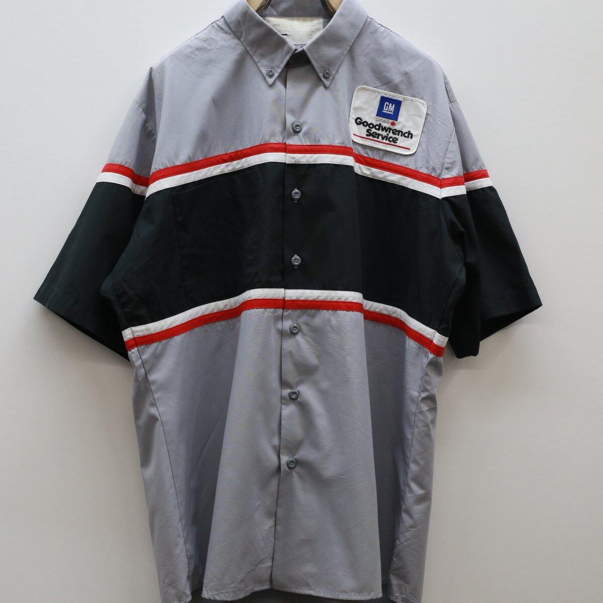 ユーズド 半袖 ワークシャツ 切り替え ライン GM グレー ワッペン 刺繍